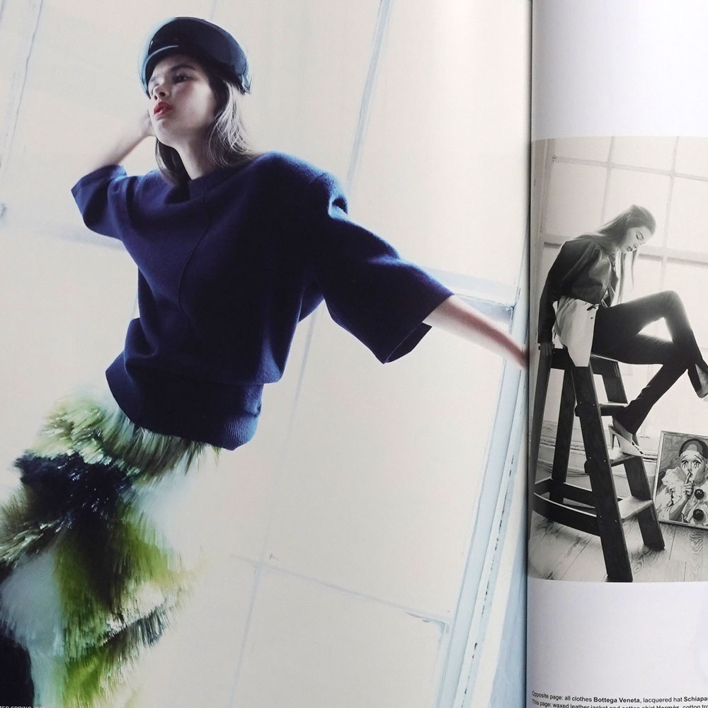 ファッション特集では、モデルのAngelina KendallとロボットHMND Alphaが共演。テクノロジーと人間の関係性を象徴的に描き出し、今という時代を鋭く映し出します。