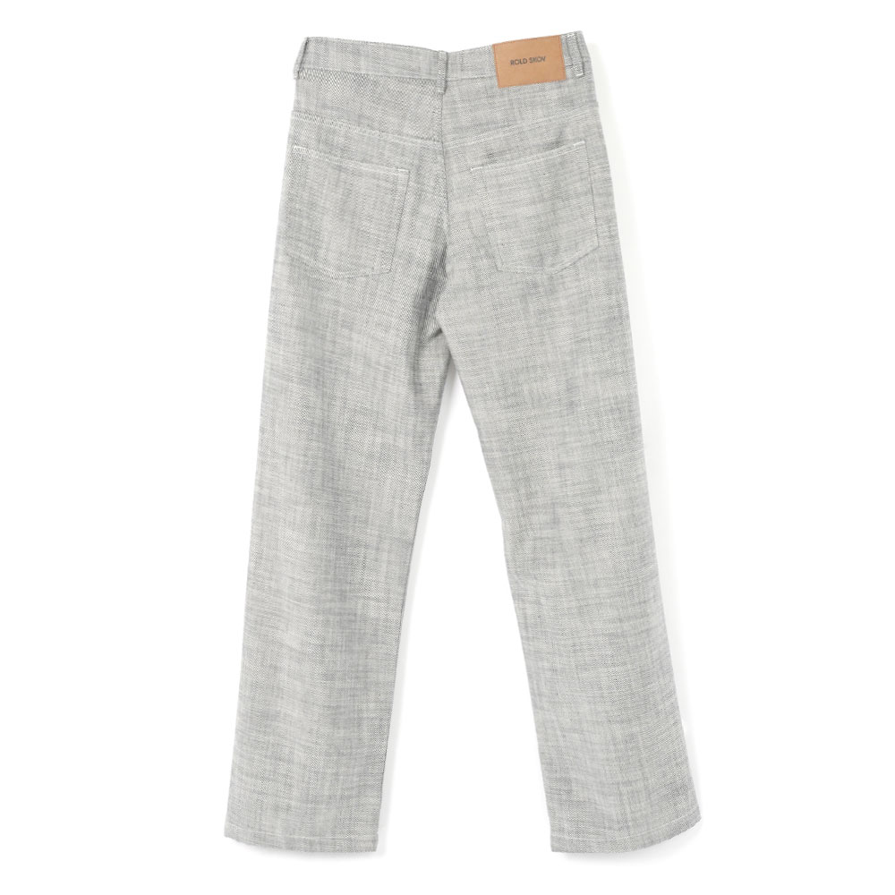 デニムの裏面の折り目をあえて表地として使用した、ユニークな一本。