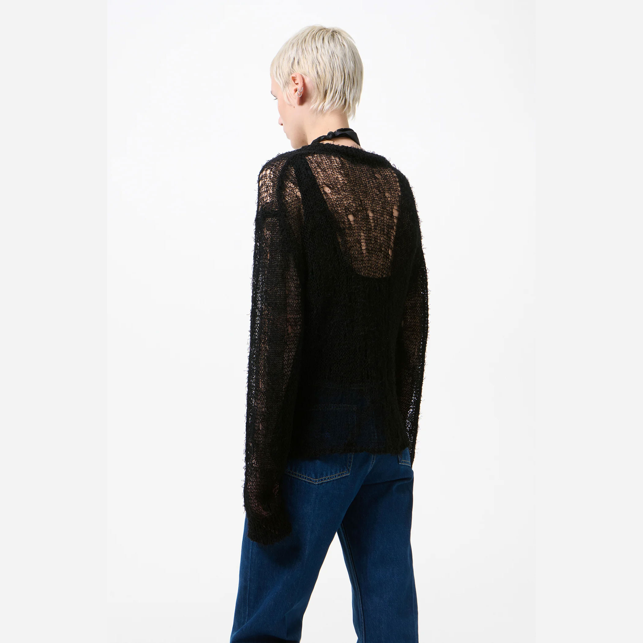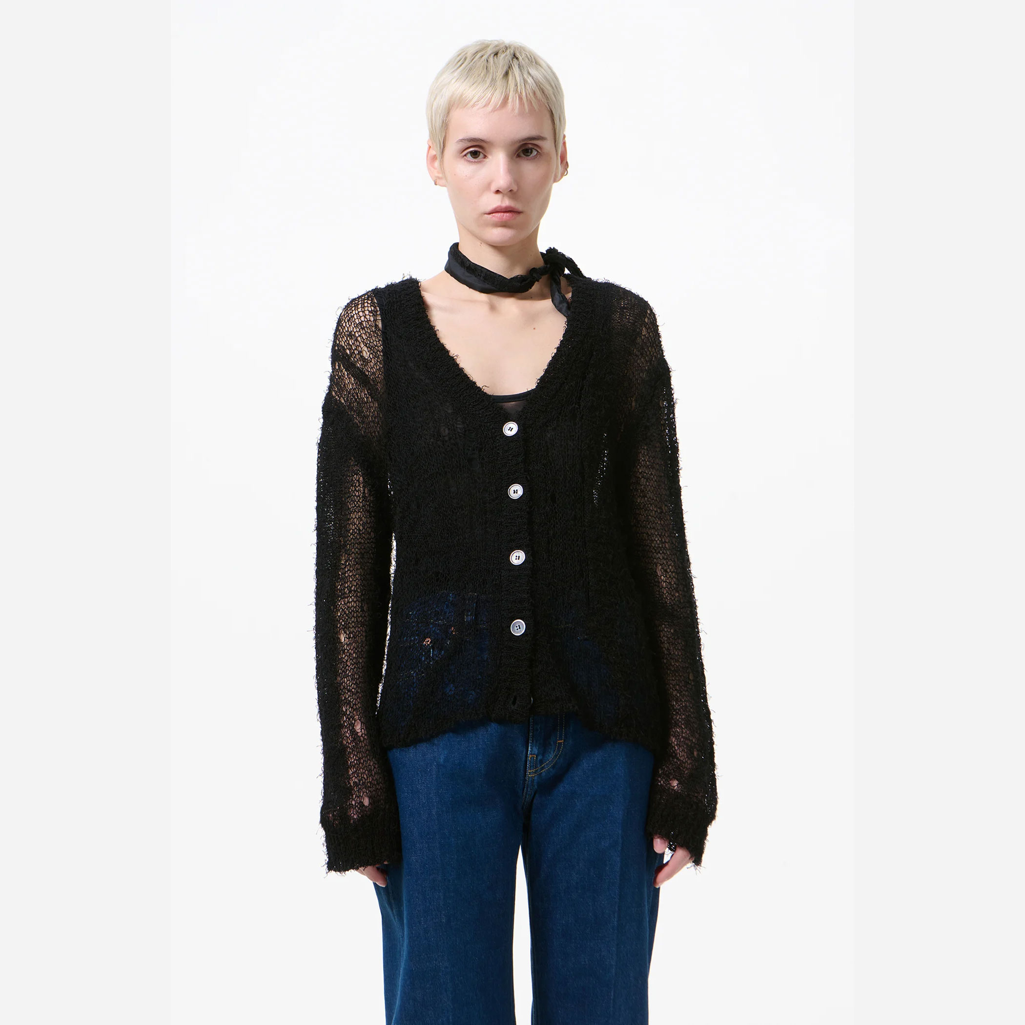 ACADEMY CARDIGAN BLACK RAGGED OPEN LINEN
