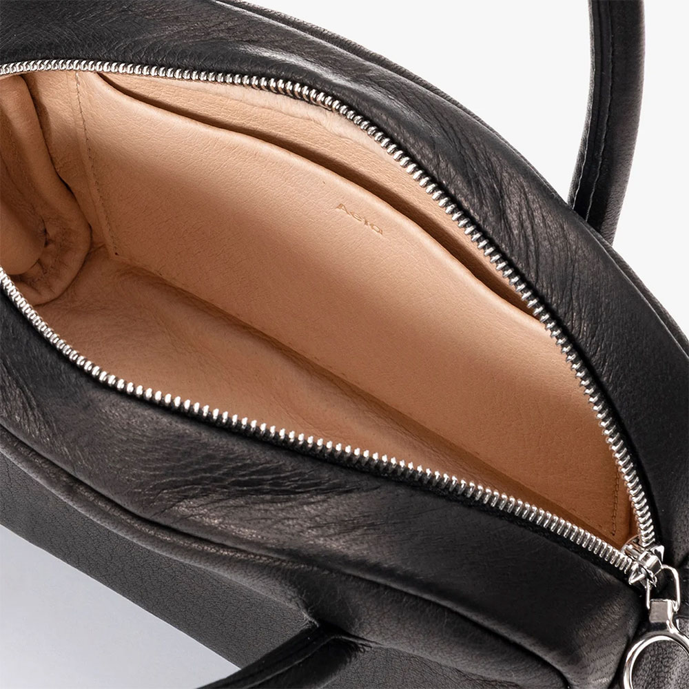 AETAのアイコンともいえるレザーコレクションから育てる楽しさを感じられる上質なディアレザーを使用したポーチサイズのボストンバッグ。ショルダーストラップ付きで肩がけも可能なデザインにアップデート。細かいシボがあり、キップレザーと比べよりレザーらしい質感が感じられます。