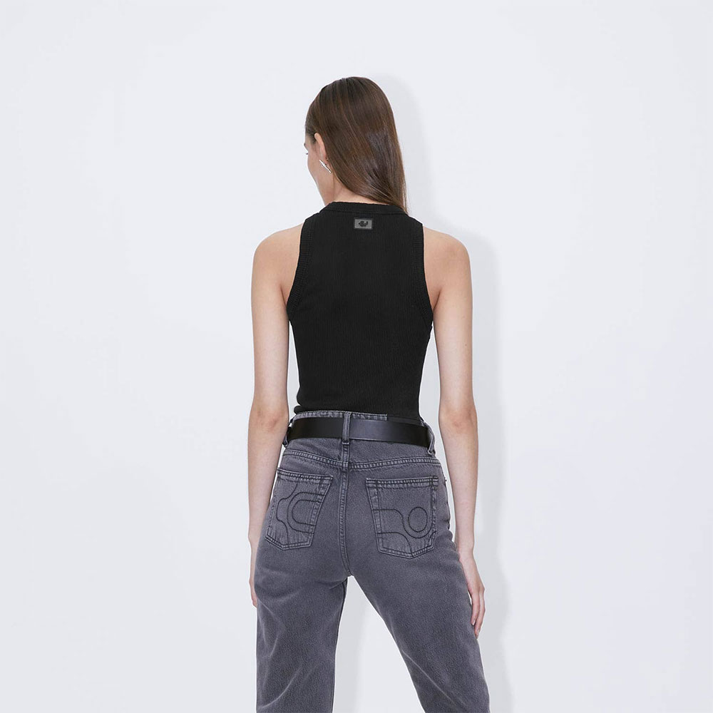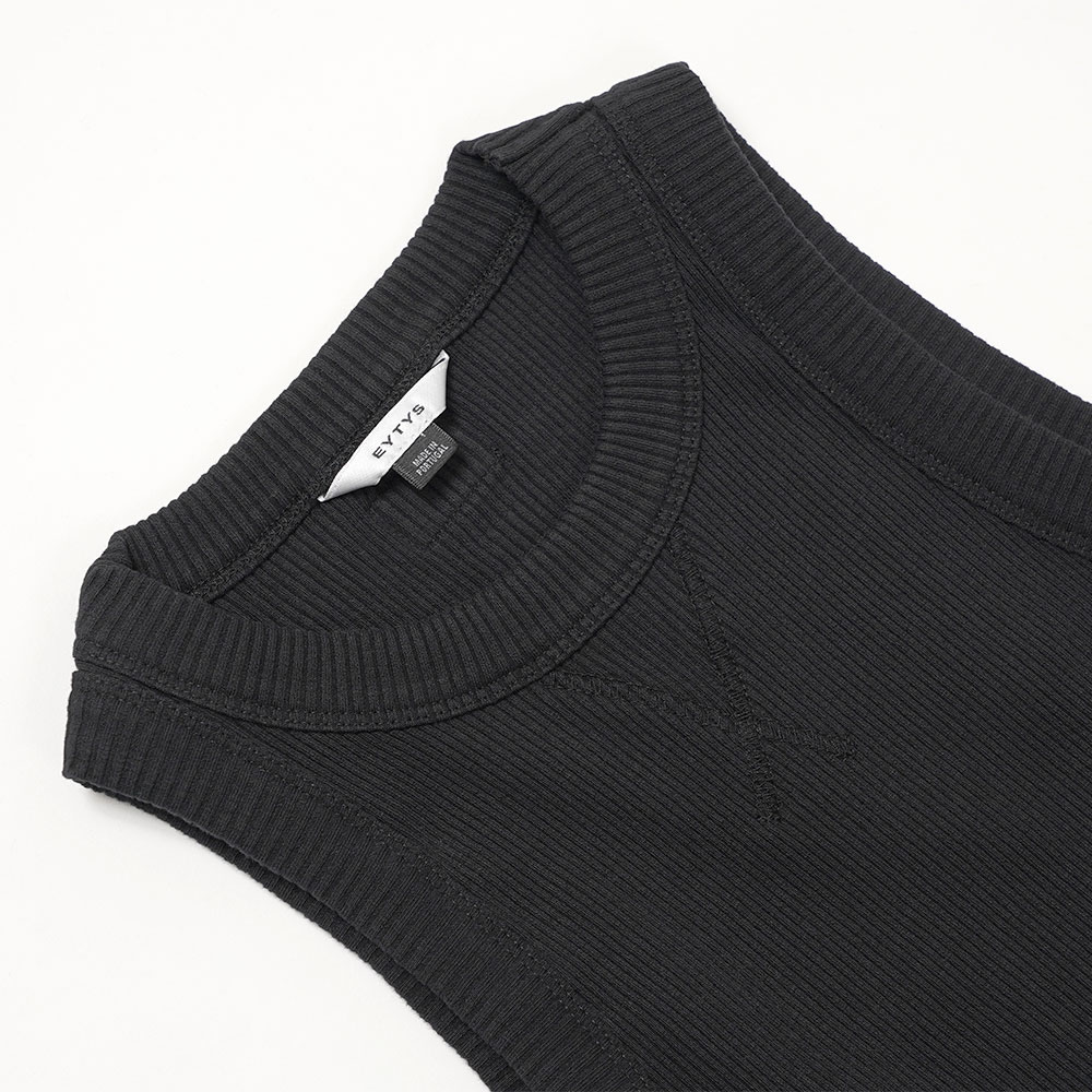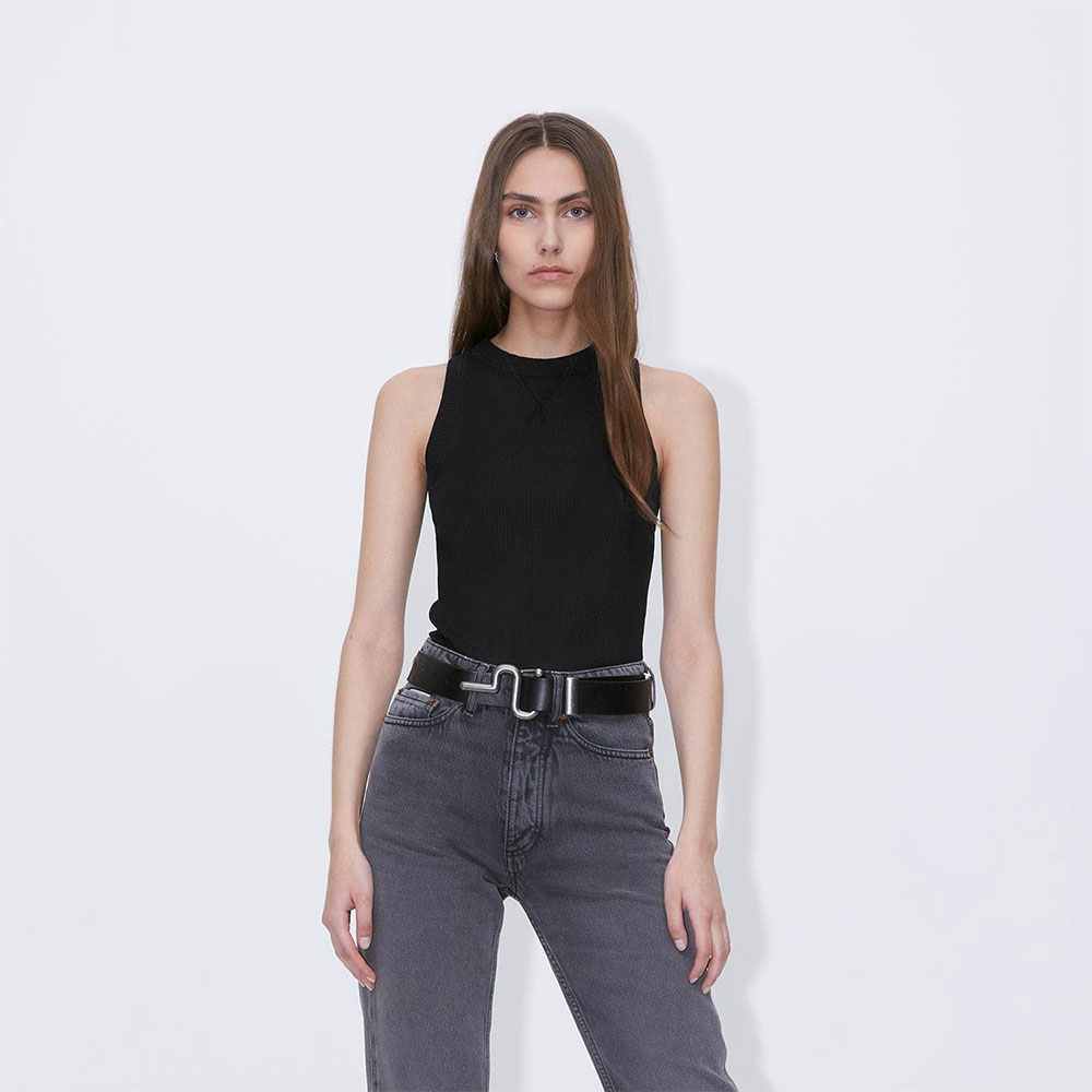 ボディコンシャスなフィットのリブ編みタンクトップ 。透け感は無いしっかりとしたコットンジャージー生地。1枚でもレイヤードスタイルのベースとしても重宝する、ワードローブの必須アイテム。