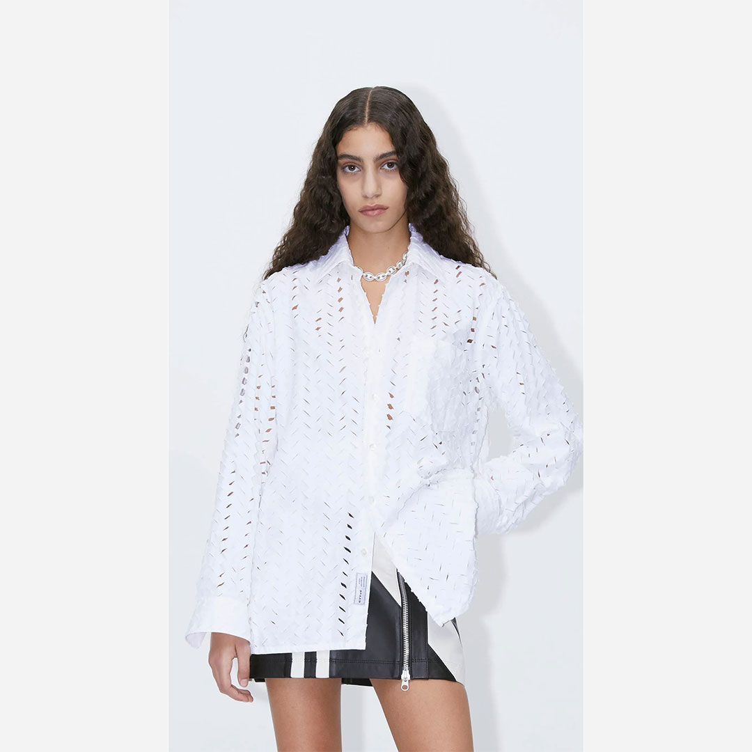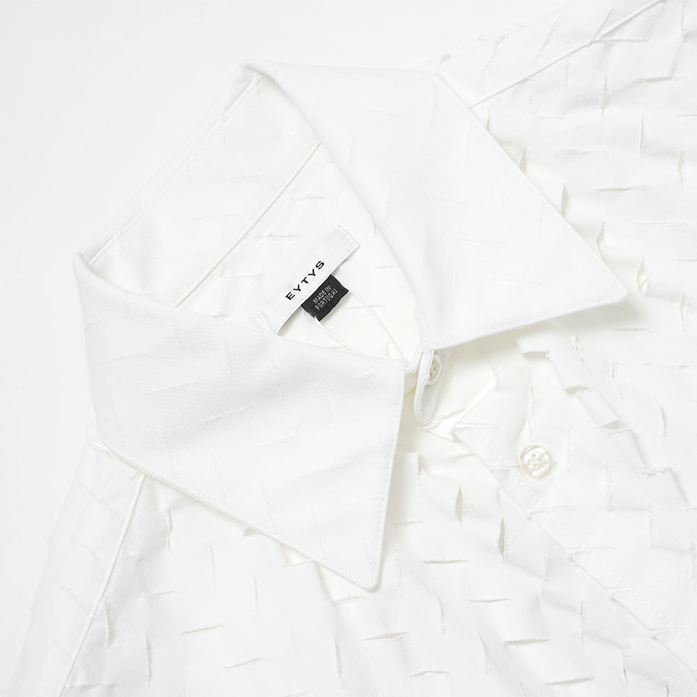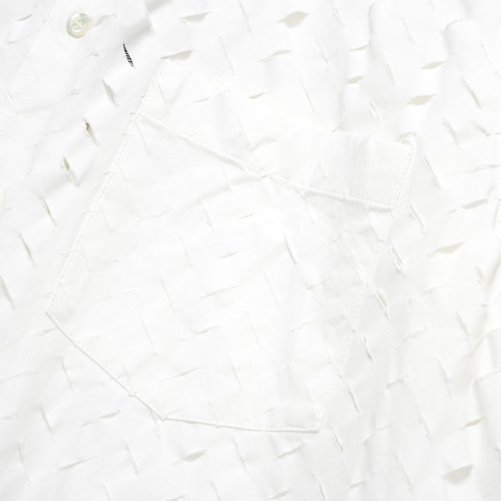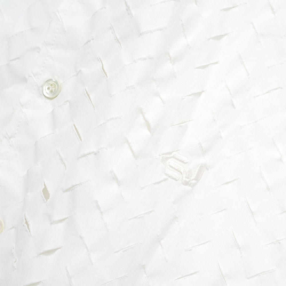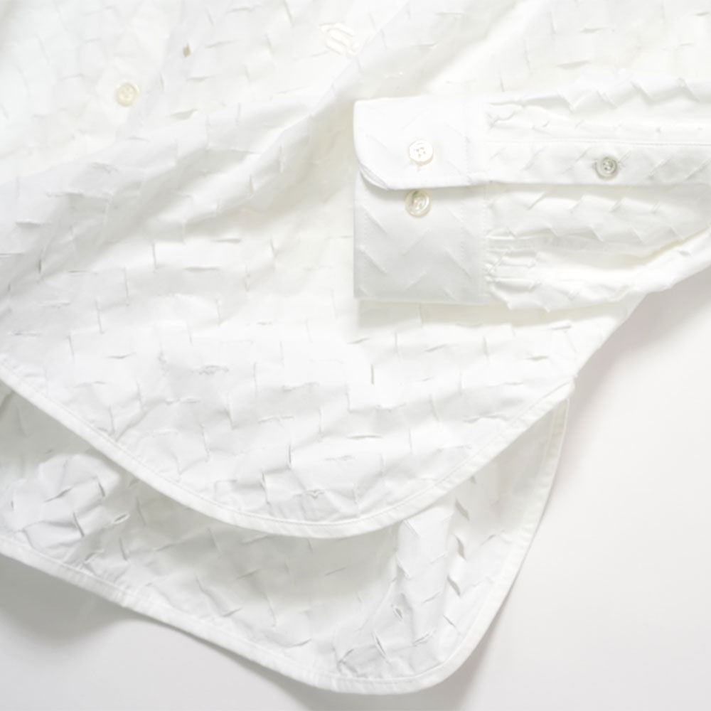 レーザーで削ったヘリンボーン柄をあしらったコットンシャツ。