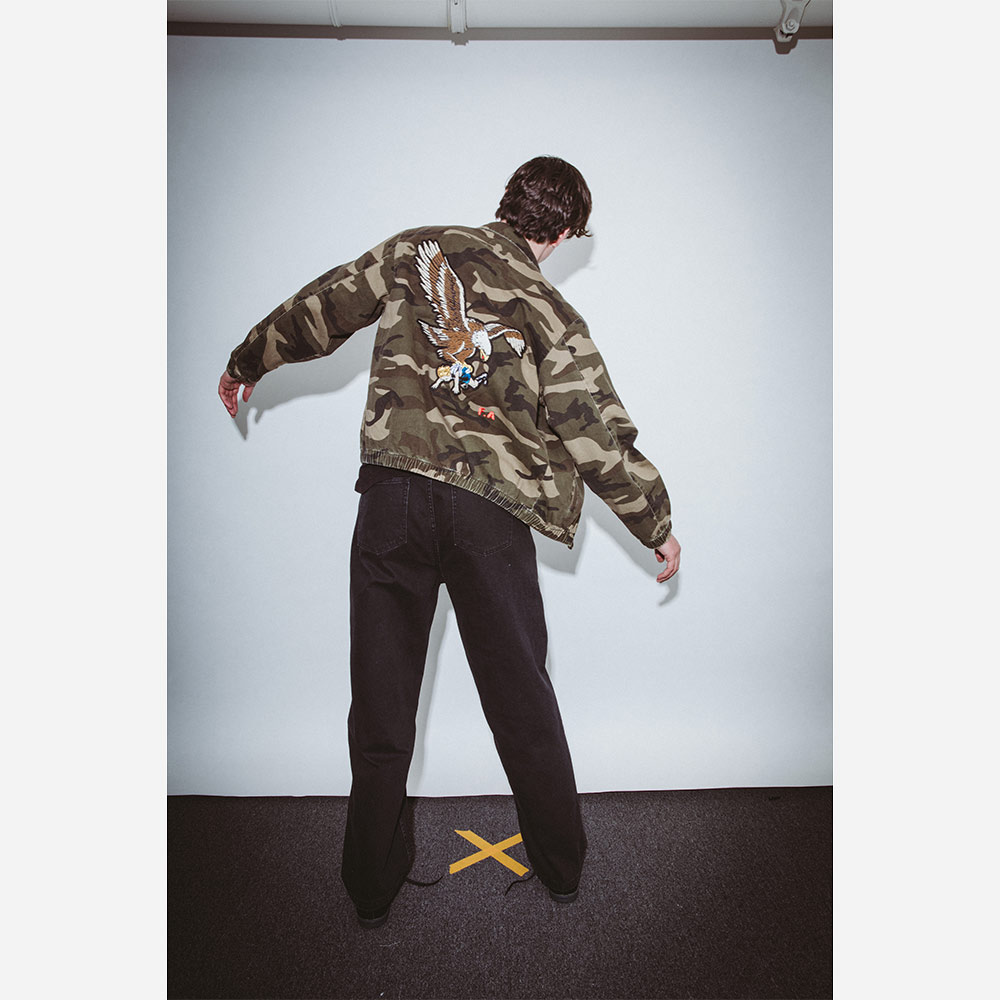 立体感のある 「Eagle 」アートワークパッチを配したバックスタイルが特徴。リラックスフィット。