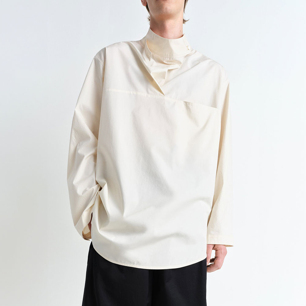 ドレーピーでソフトな手触りの軽やかなコットンポプリンで製作されたLEMAIREらしいプルオーバーシャツ。ブランドの掲げる機能性とミニマルな美学を融合した1枚。リラックスフィット。