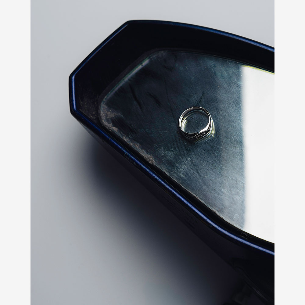 ブランドロゴを配した定番シグネットリングの新型。ナローなシェイプでよりミニマルなデザイン。SILVER925。ユニセックススタイル。