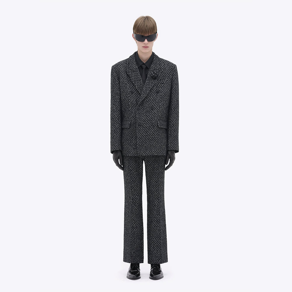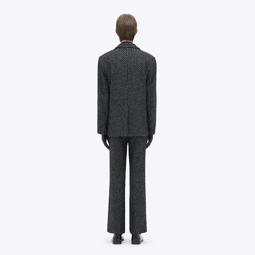 ブランドのスタイルの根幹をなすダブルブレストのテーラードジャケット。イタリア製のバージンウールツイルを使用。