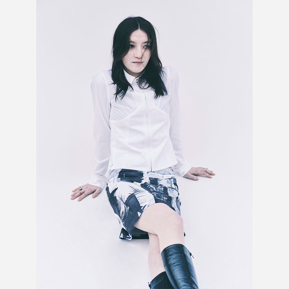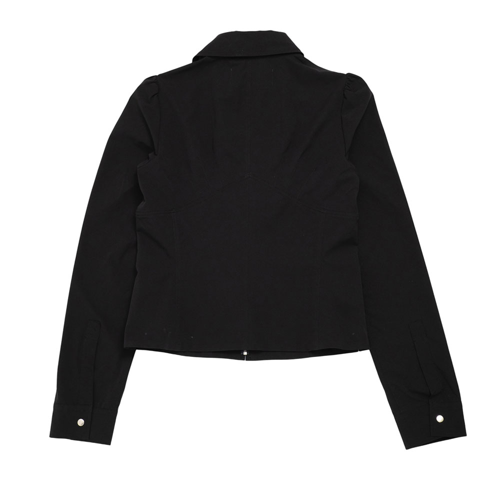 アイテム名の通り、ウエストをコルセットのようにシェイプさせたジップシャツ。秋口には軽いアウターとして、冬場にはインナーとして活躍します。シンプルなデザインの中に、ブランドらしい世界観が見える一着です。