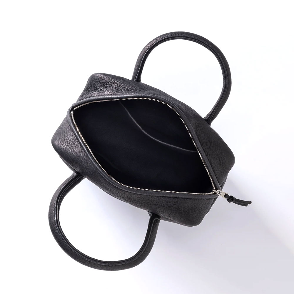 AETAのアイコンともいえるレザーコレクションから育てる楽しさを感じられる上質なディアレザーを使用したミニボストンバッグです。細かいシボがあり、キップレザーと比べよりレザーらしい質感が感じられます。