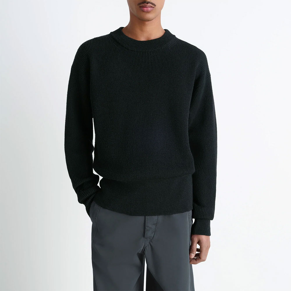フィッシャーマンセーターに着想を得た、リブ編みのバージンウール製ボクシーセーター。特別なウォッシュ加工が施され、柔らかな肌触りが特徴。やや太めのリブは伸縮性があり、快適なフィット感。裾のリブ幅を広めに取ることで、ボトムスインのスタイリングに美しく馴染むのも魅力的。ミニマルでありながら洗練された佇まいで、さまざまなスタイリングに馴染む汎用性の高い1着。