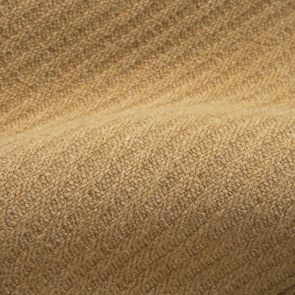 Super120's原料の細番手梳毛TOP糸を使用して織り上げた、存在感のある太畦ツイード素材です。裏面には伸縮性のある素材を貼り合わせ、特殊な技術を駆使して、天然繊維だけでは表現できない独特の質感を実現しました。表面は上質なウール特有の風合いを持ちながら、内部にはスポンジのような弾力性があり、柔らかさとしっかりとしたボリューム感を兼ね備えた素材です。