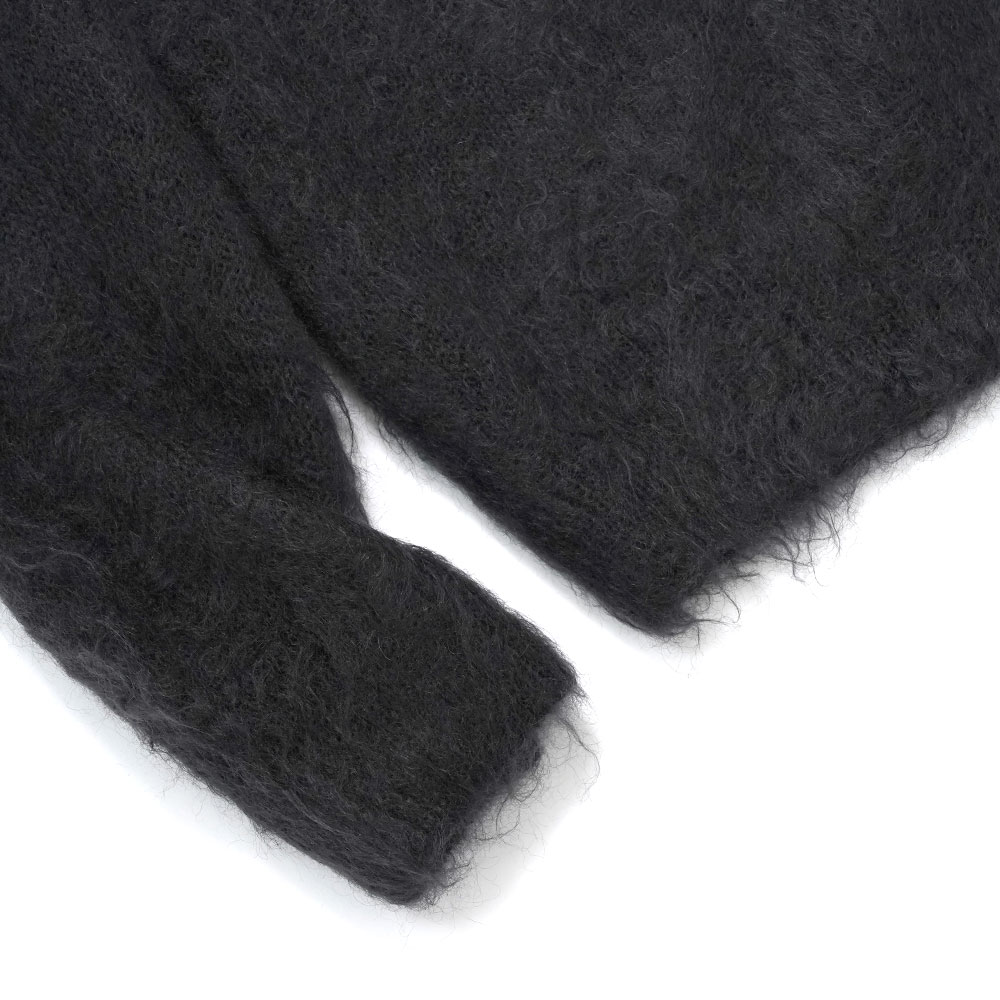 南アフリカ産の柔らかなスーパーキッドモヘヤを甘撚りに紡績し、芯糸には柔らかな天然ウールを使用して編み上げた、ふんわりとした温かみを感じる極上のモヘヤニットです。軽やかで滑らかな肌触りに加え、モヘヤ特有の美しい光沢感と、ボリューム感のある長い毛足が特徴です。