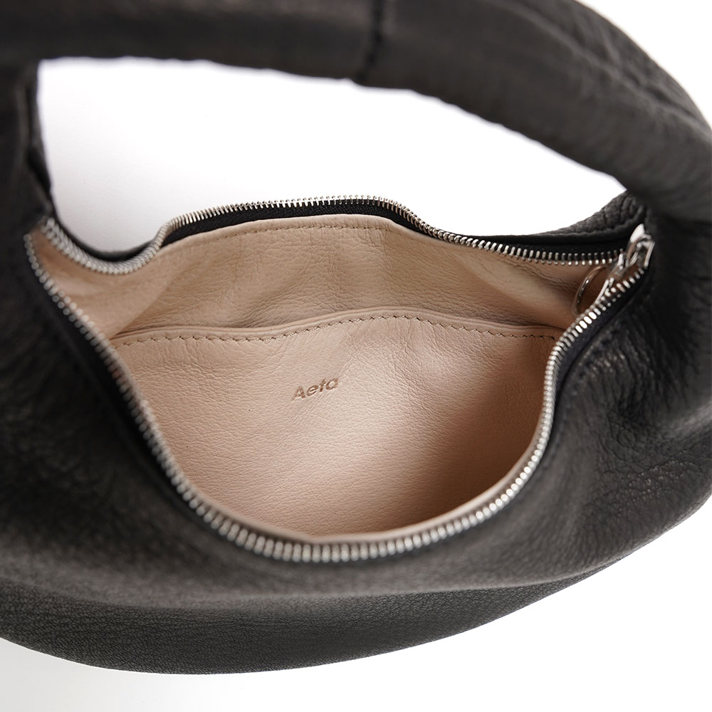AETAのアイコンともいえるレザーコレクションから育てる楽しさを感じられる上質なディアレザーを使用したショルダー/ハンドバッグです。細かいシボがあり、キップレザーと比べよりレザーらしい質感が感じられます。