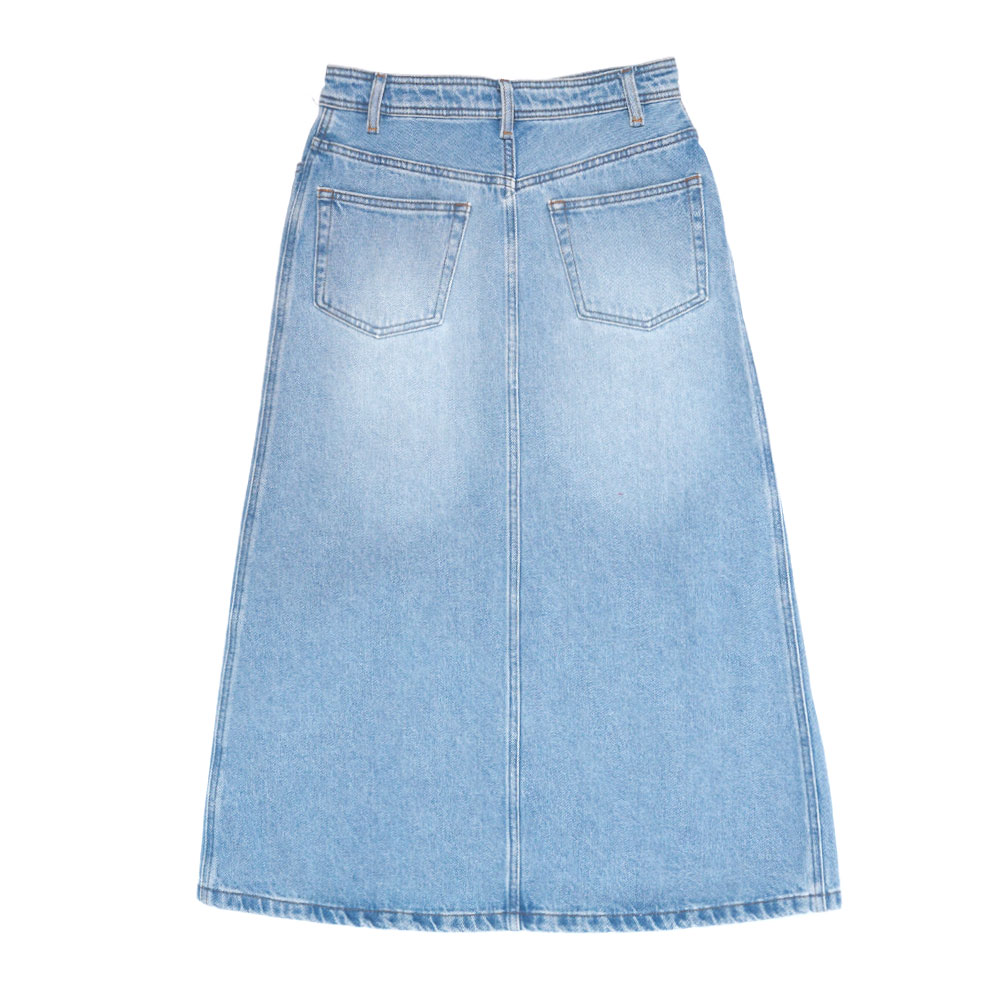 ウォッシュドデニムを使用したフレアシルエットのデニムスカート。