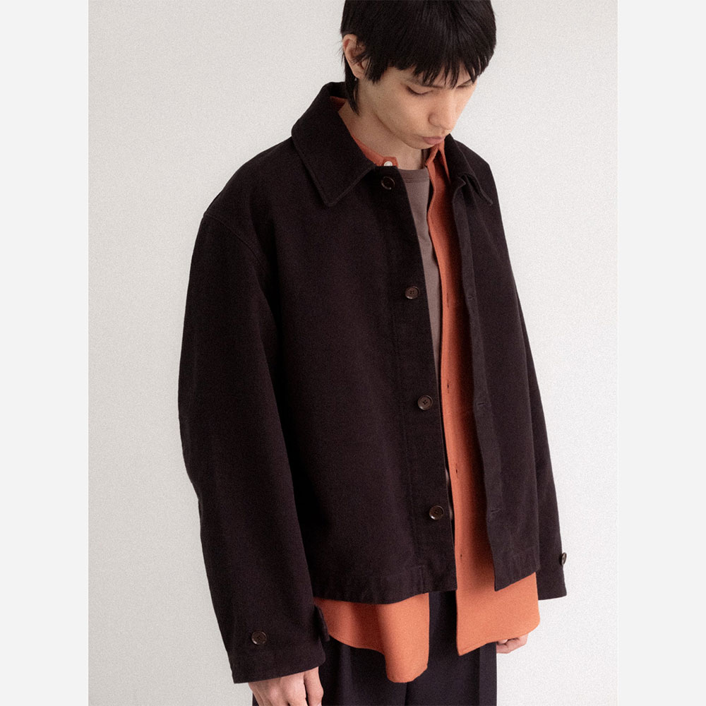 コットンモールスキンを使用した、滑らかで温かみのある肌触りが魅力のブルゾン。アームホールにゆとりを持たせているため、スウェットやニットなどとのレイヤードもスムーズ。リラックスフィット。