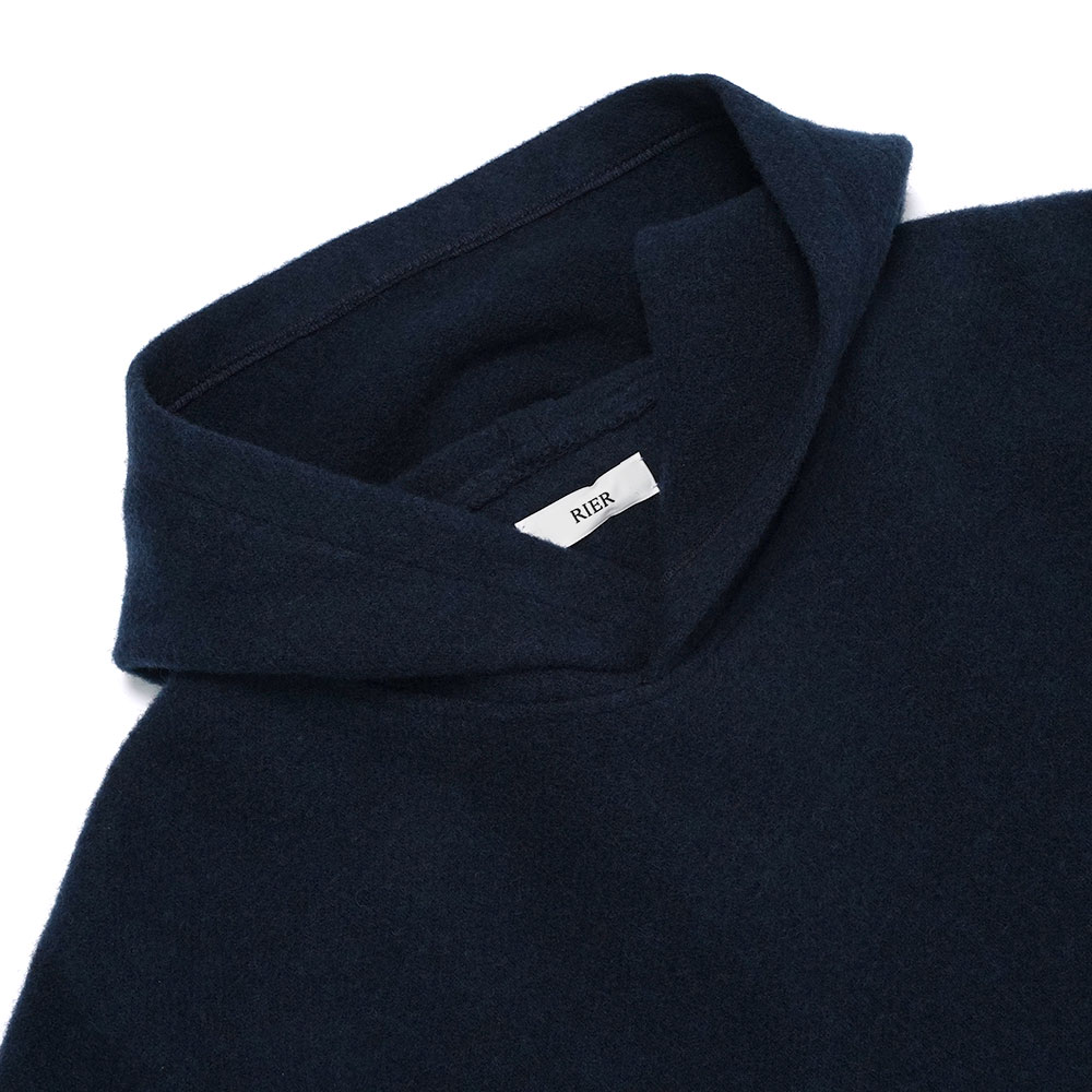RIERではお馴染みの100%ナチュラルウールの超軽量フリースでの新型プルオーバーフーディー。レギュラー着丈、ワイドな身幅のオーバーサイズシルエット。