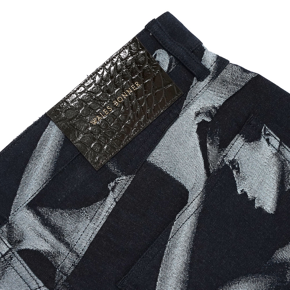 ストレートフィットデニムジャカードショーツ。生地に織り込まれたアーカイブ画像が特徴的。シカゴ・サウスサイドを拠点に、彫刻や陶芸を中心に、音楽・パフォーマンス・建築など多ジャンルで活動するアーティスト兼アクティヴィストのシアスター・ゲイツとアフリカ系アメリカ人の歴史・文化を記録した写真アーカイブを再評価・再構築するプロジェクト「ブラックイメージコーポレーション」のコラボレーションコレクション。