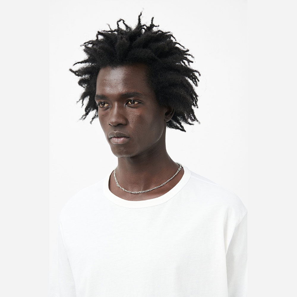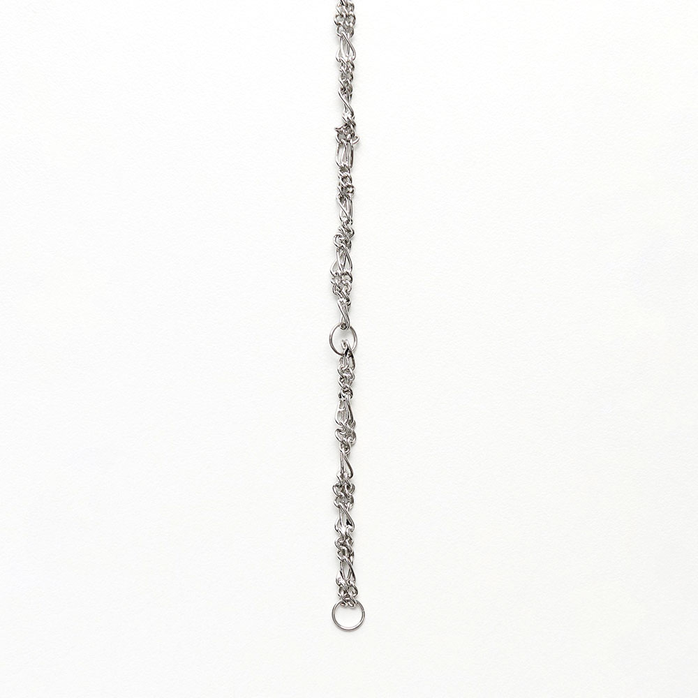 クラシックなフィガロチェーンを独自に開発し、ねじり合わせることで柔らかな有刺鉄線の外観を創出。このミディアム丈のネックレスは軽量構造で光沢あるシルバー仕上げ。2サイズ調整可能。イタリア製ブラスを使用しています。