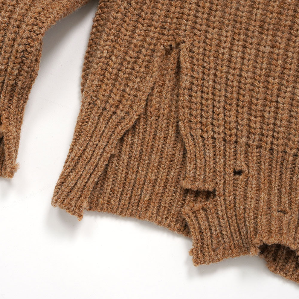 ディシェベルド調のエッジとフロントヨークのコントラストが特徴の、ヴァージンウールを使用したルーズフィットタートルネック。 コントラストカラーの手刺繍によるマルニメンディング入り胸ポケット。ゆったりとしたオーバーサイズ。