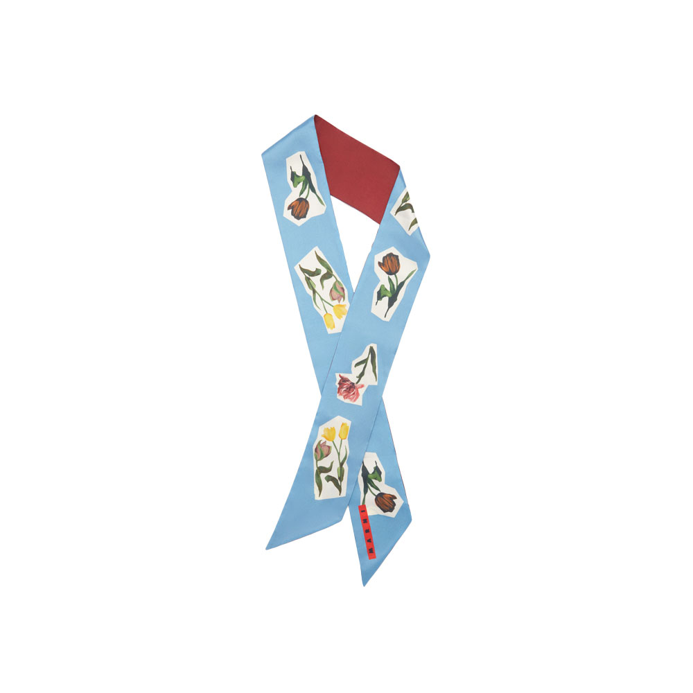 MARNI/マルニよりBLUE SILK SCARF WITH FLOWER COLLAGE ORANGEになります。