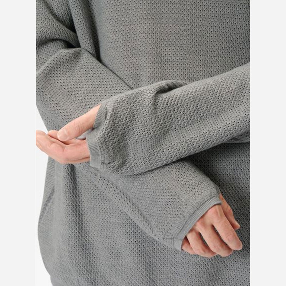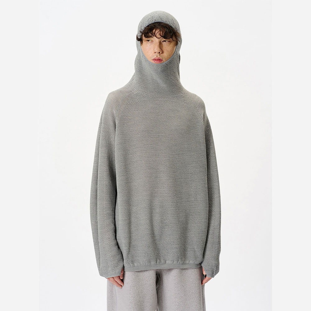 全体を細かな孔が開いている編み地で編み立てた、バラクラバ型フードのニットトップ。無縫製のWholegarmentテクノロジー によって、縫い目が身体に触れず着心地に優れています。ウールとポリエステルの糸をミックスし、快適なあたたかさと丈夫さをあわせもち、都市での生活からアクティビティシーンまで活用できます。
