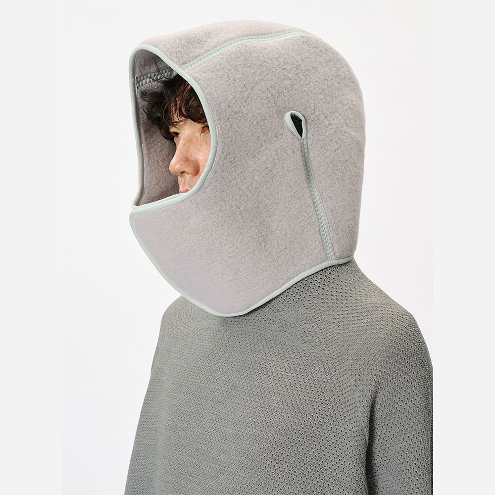 機能とデザインのイノベーションを追求するGoldwin 0のFW25コレクション。あたたかみがあり、柔らかなウールフリースを使用したフード。寒い季節に首から上を守るアクセサリーとして機能します。独特な起毛感と際立った切り替えのラインが特徴です。