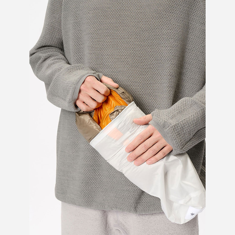 Goldwin が開発した、折り紙のようなプリーツによってダウンバッフルを立体化し暖かさを増す「3D Box Baffle」を全体に取り入れたダウンベスト。単体をアウターとして着用するほか、ジャケットの外側への重ね着にも使用できます。シルクのような光沢感があり摩擦に強いナイロン生地、Pertex Diamond Fuse を使用。