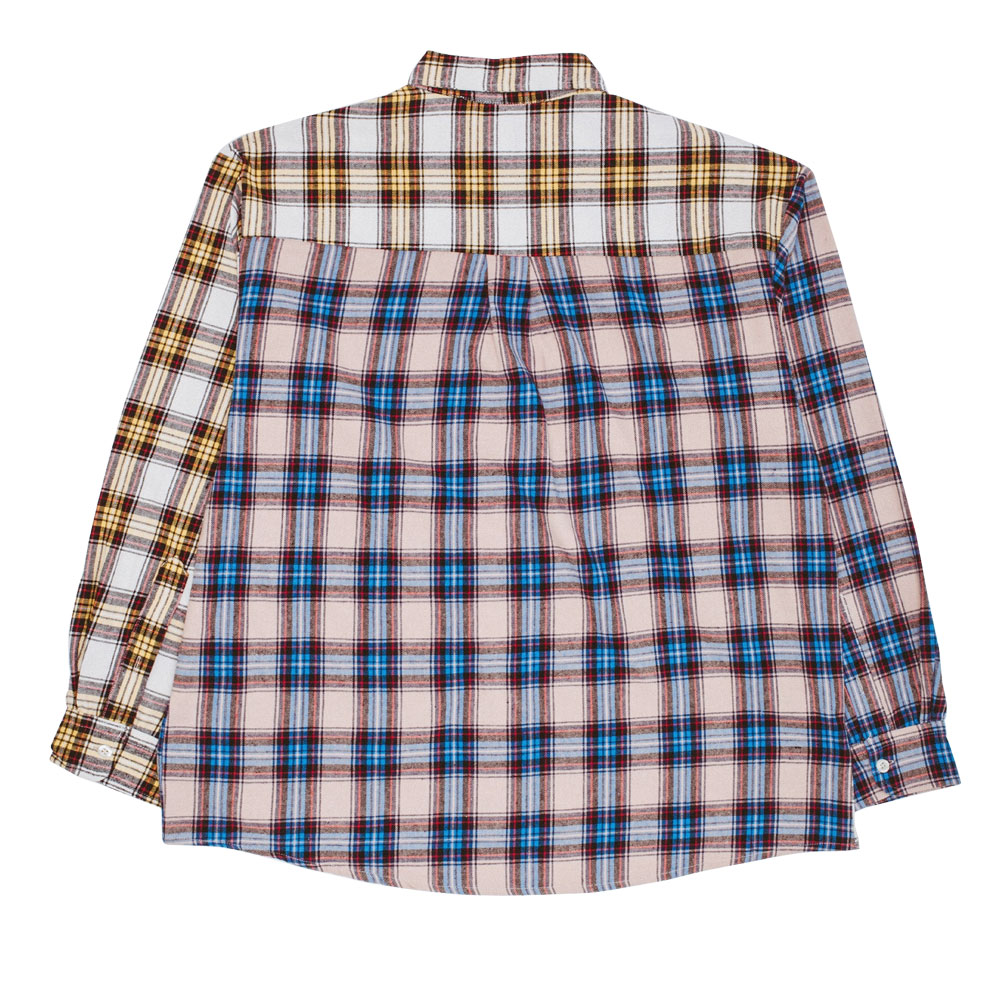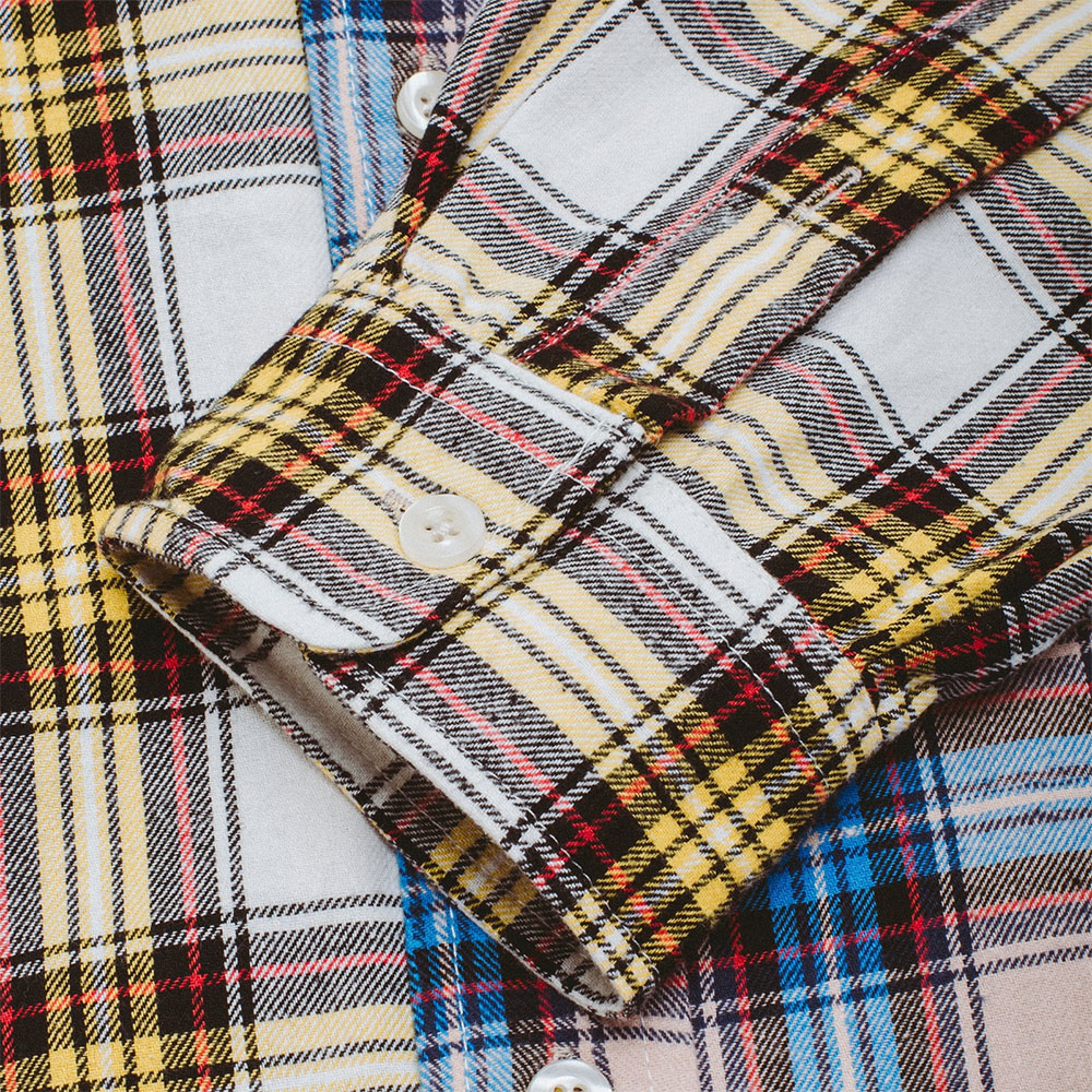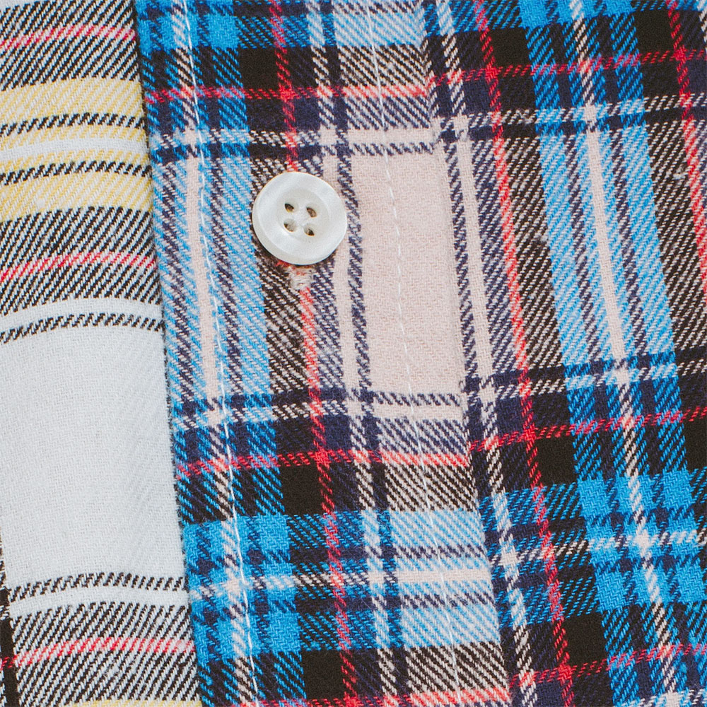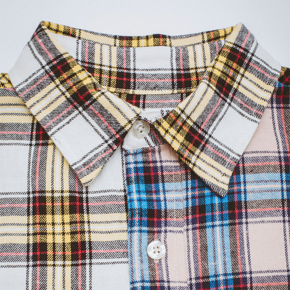 コットンフランネル素材を使用したロングスリーブシャツ。カラフルなチェックパターンの組み合わせが印象的な一着。