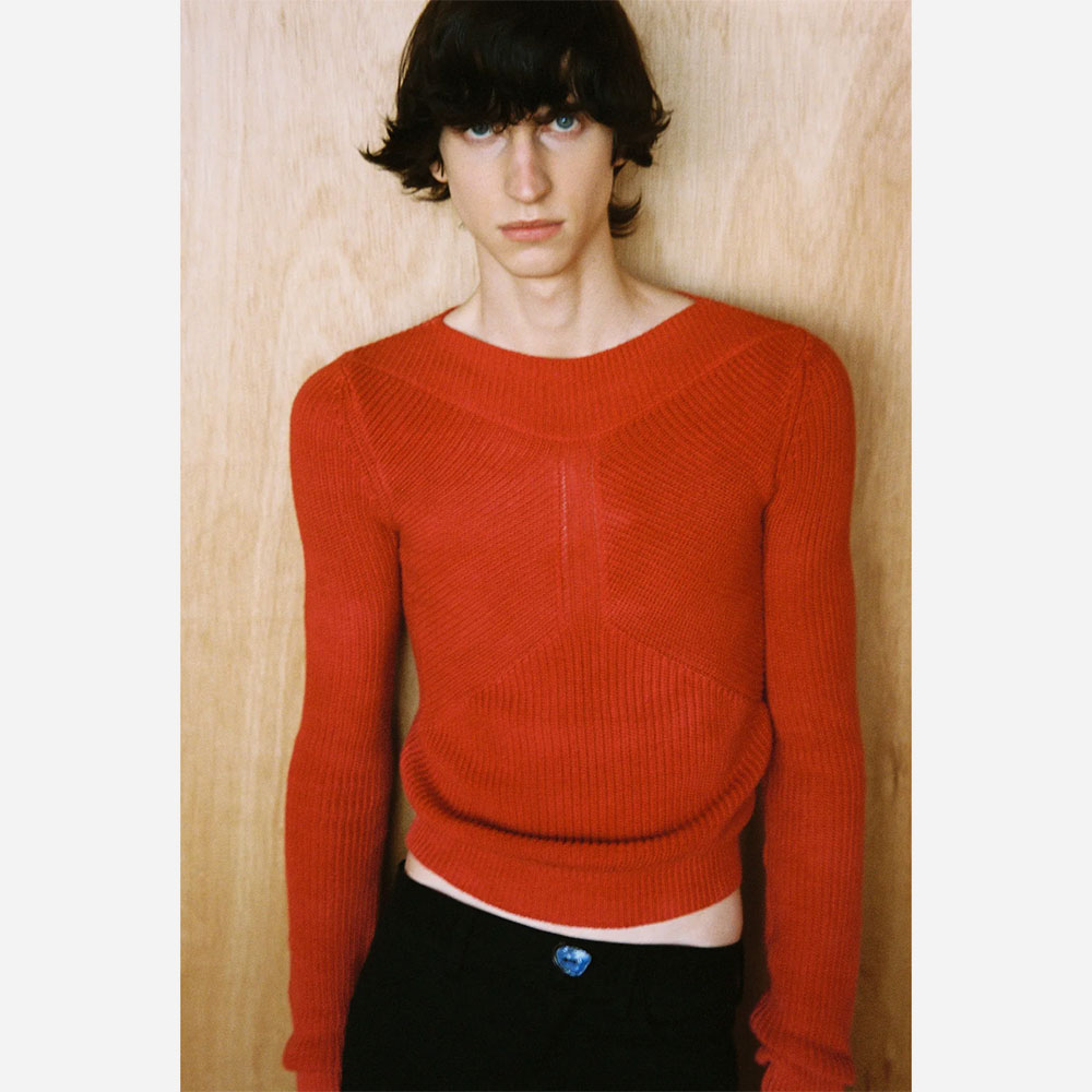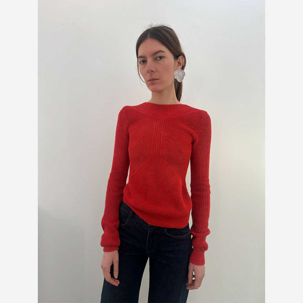 EMILY DAWN LONG/エミリー・ドーン・ロングよりRIBCAGE BOATNECK SWEATER ROSSO CORSA RED になります。