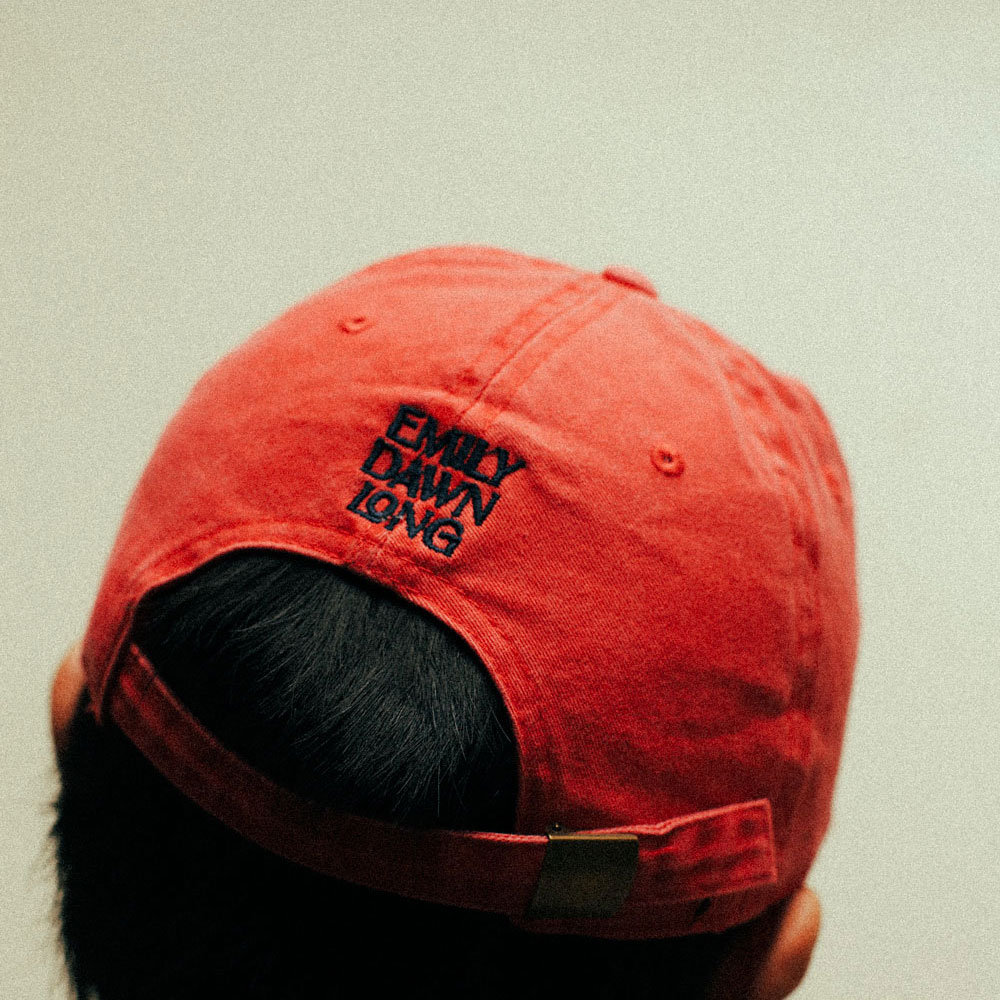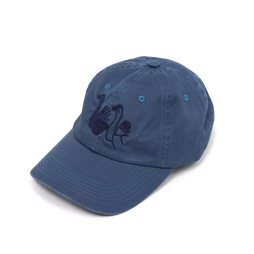 エミリーが描いた白鳥のシャドーパペットをあしらった6パネルキャップ。ガーメントウォッシュ加工を施したコットンツイル素材。ニューヨークで刺繍仕上げ。