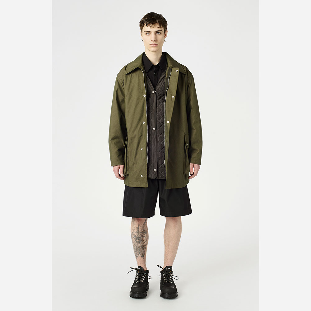 ハンティングジャケットをベースに、ブランドらしいエッセンスを加えた一着。