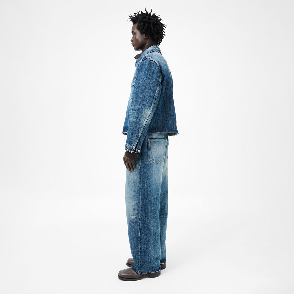 イタリア製コットンヘンプ生地を使用したバギージーンズ。ハイウエストのゆったりとしたワイドシルエット。インディゴ染め、手作業によるフェード加工、YKKジップフライ、スチールリベット、5ポケット、エンボス加工のOUR LEGACYパッチが特徴です。