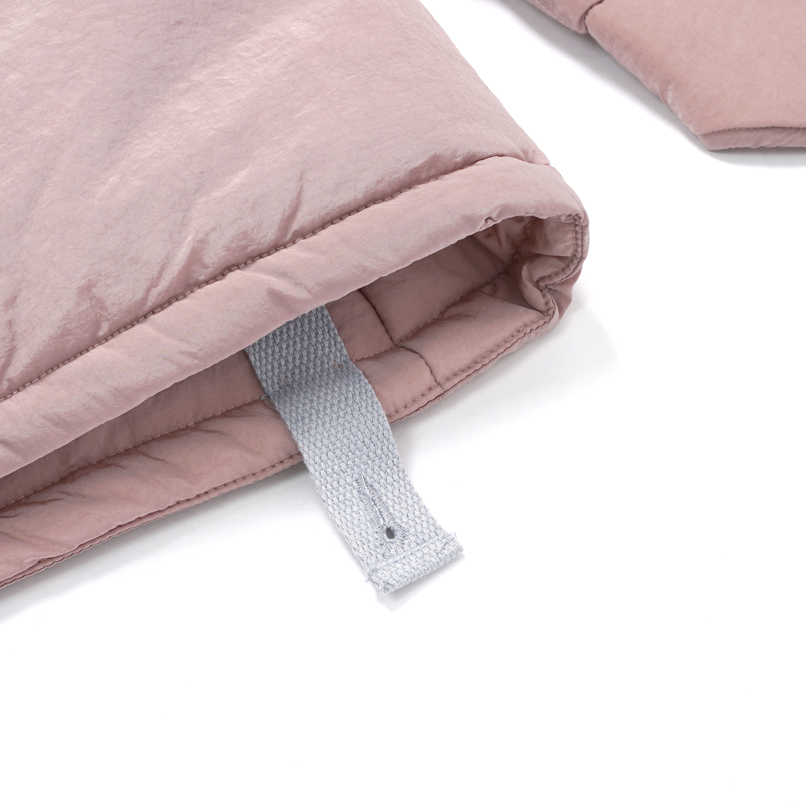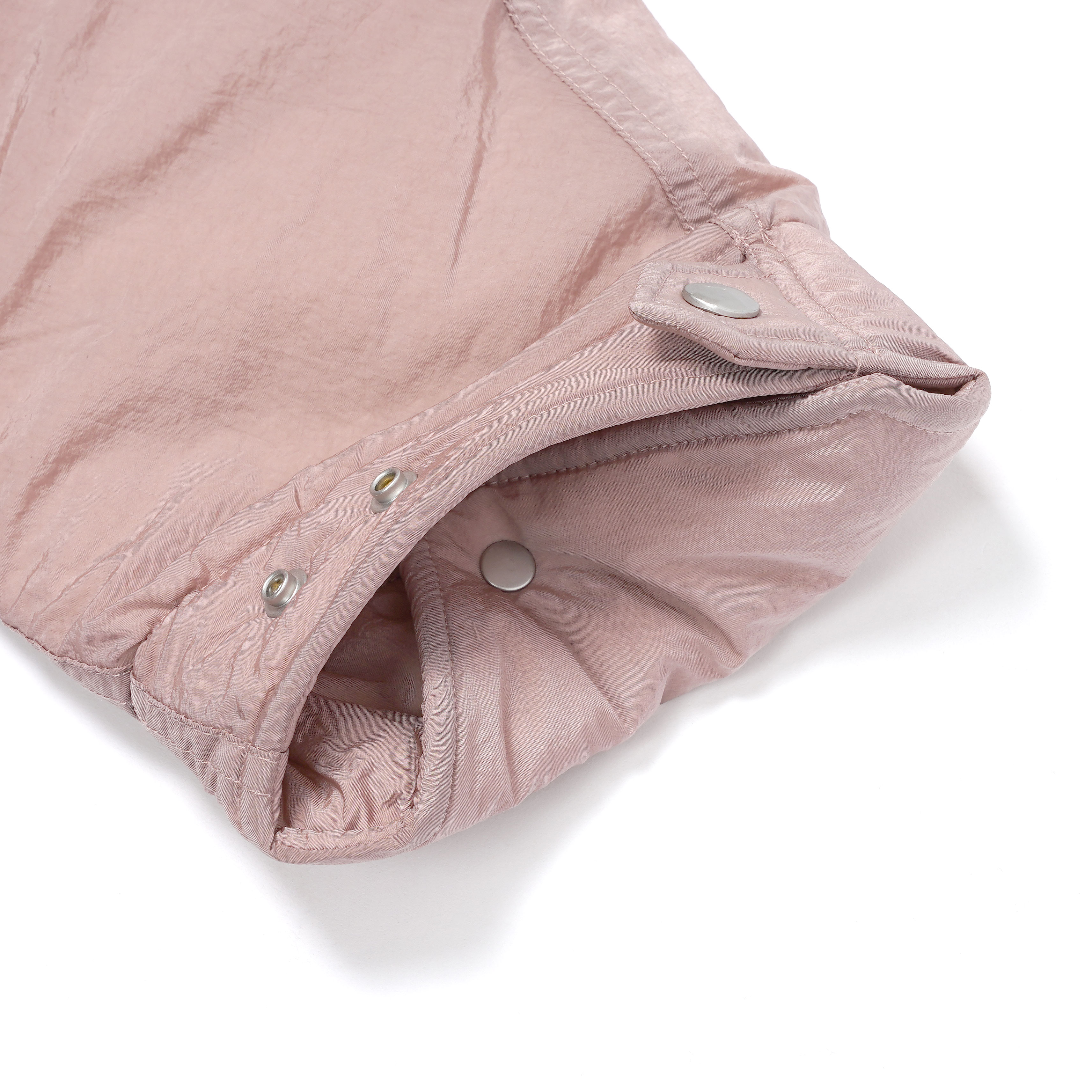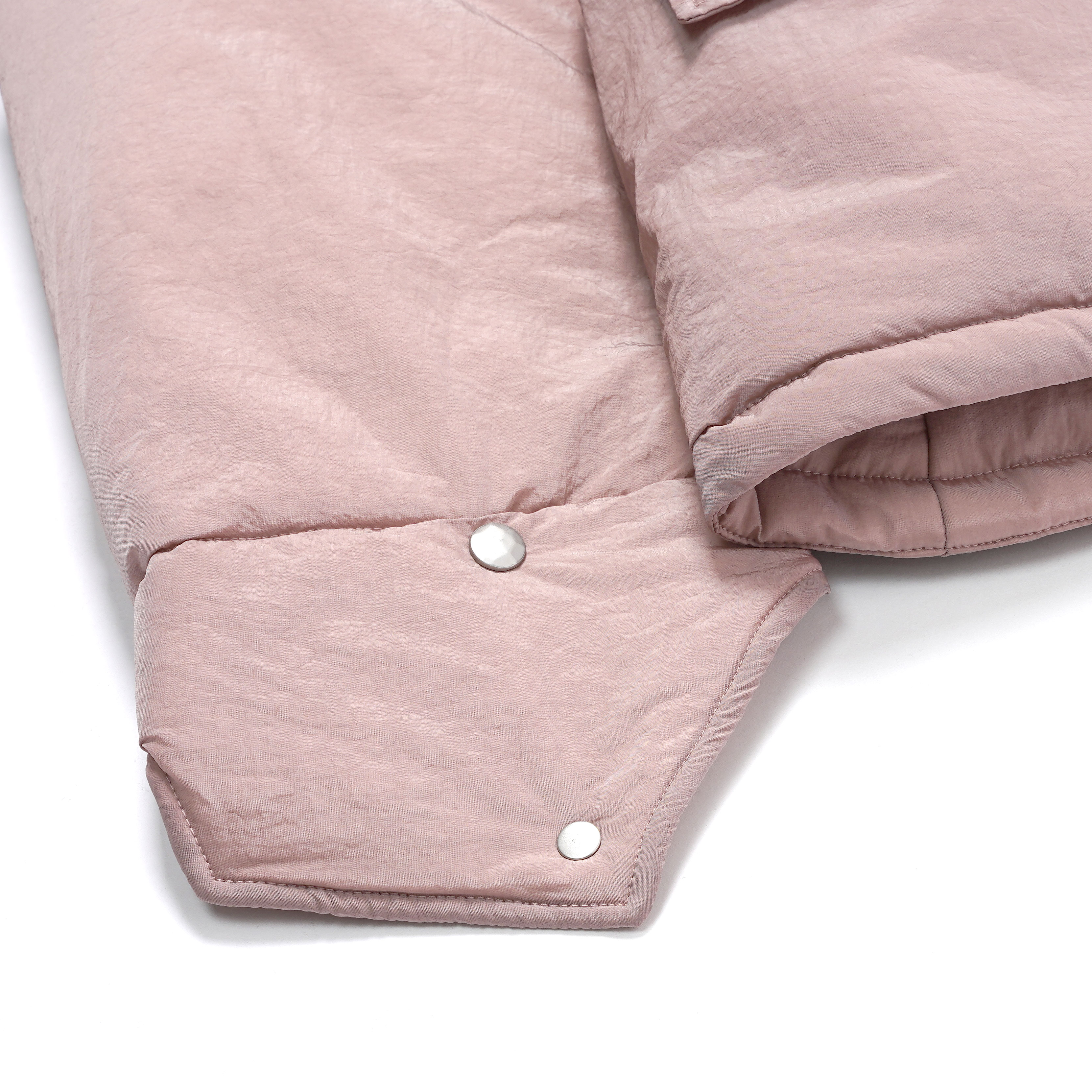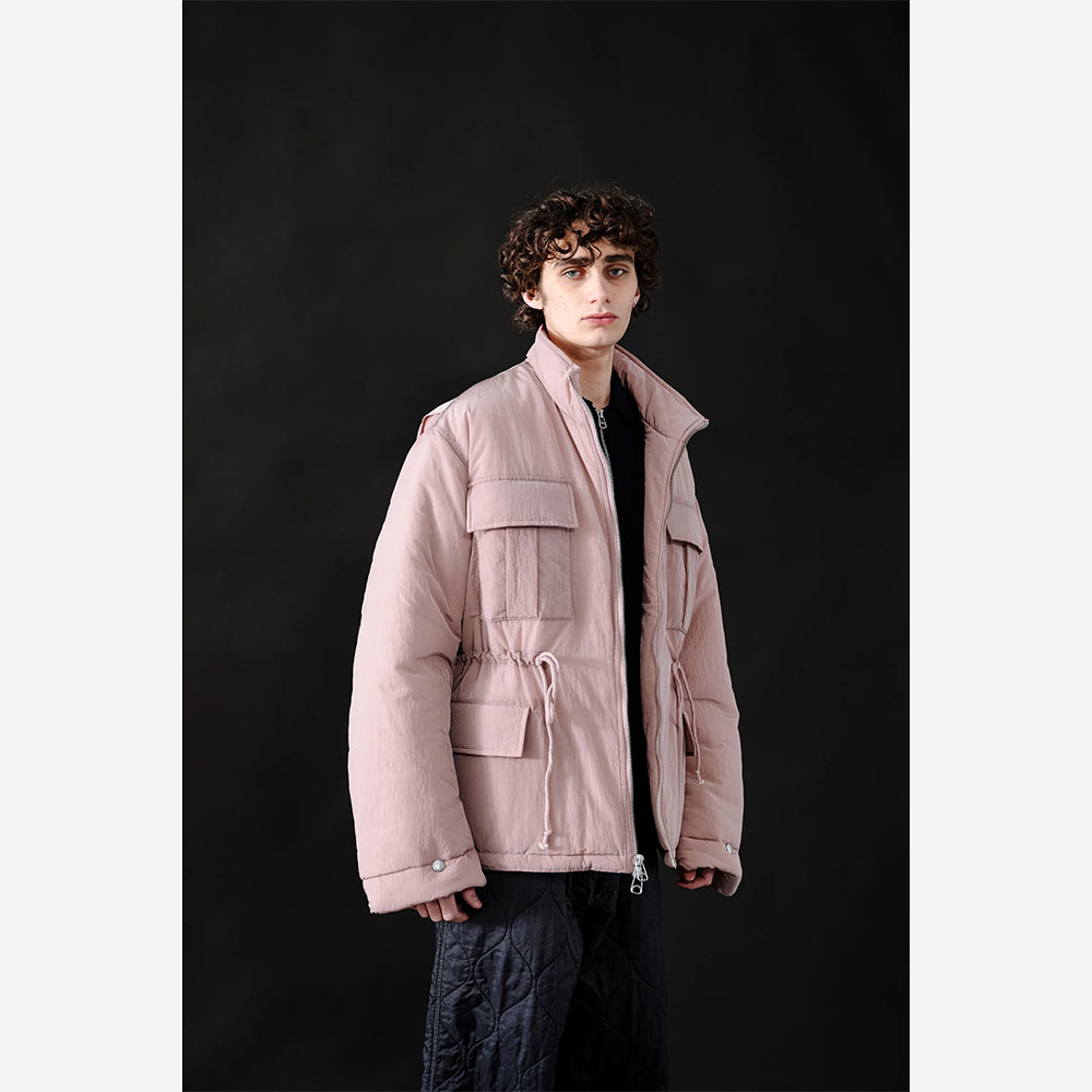 ミリタリージャケットのM-65をベースにデザインされた中綿入りジャケット。ブランドらしい淡いカラーリングが印象的で、柔らかく上品な仕上がり。ウエスト部分にはシルエットの調整が可能なドローコードを配し、実用性にも優れた一着。細部まで丁寧に作り込まれたディテールが特徴で、カジュアルからモードまで幅広いスタイリングに対応します。ダブルジップ仕様。オーバーサイズ。