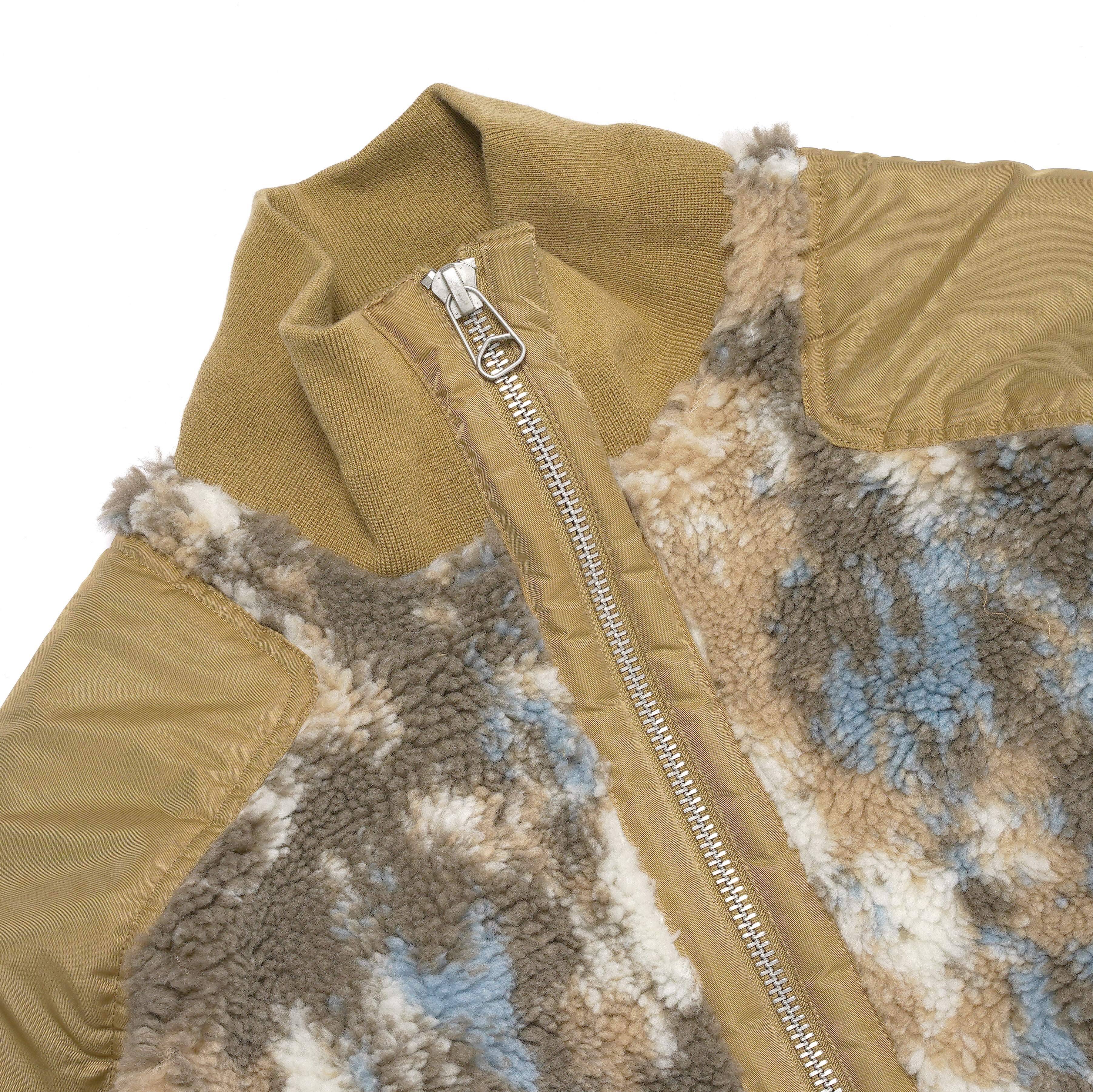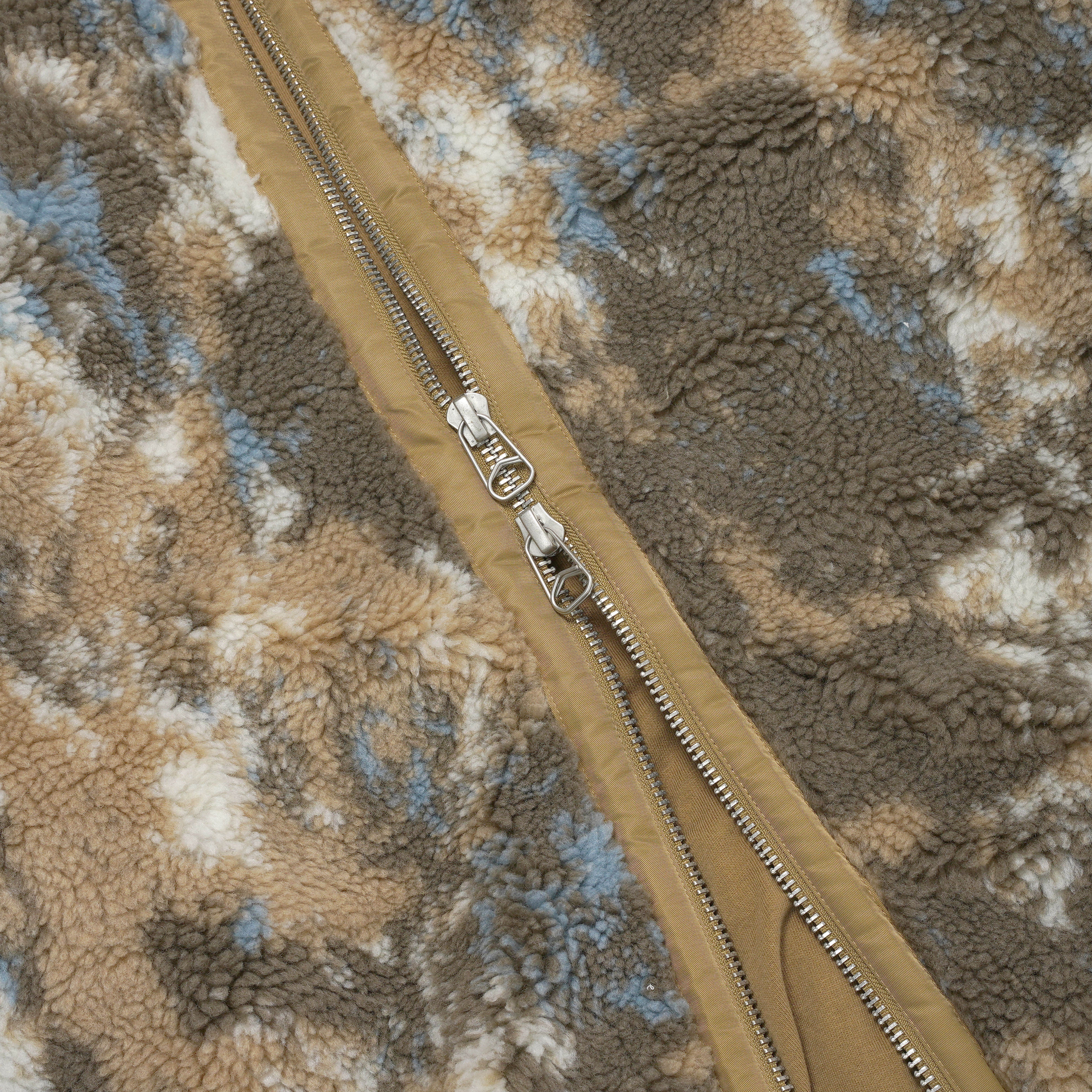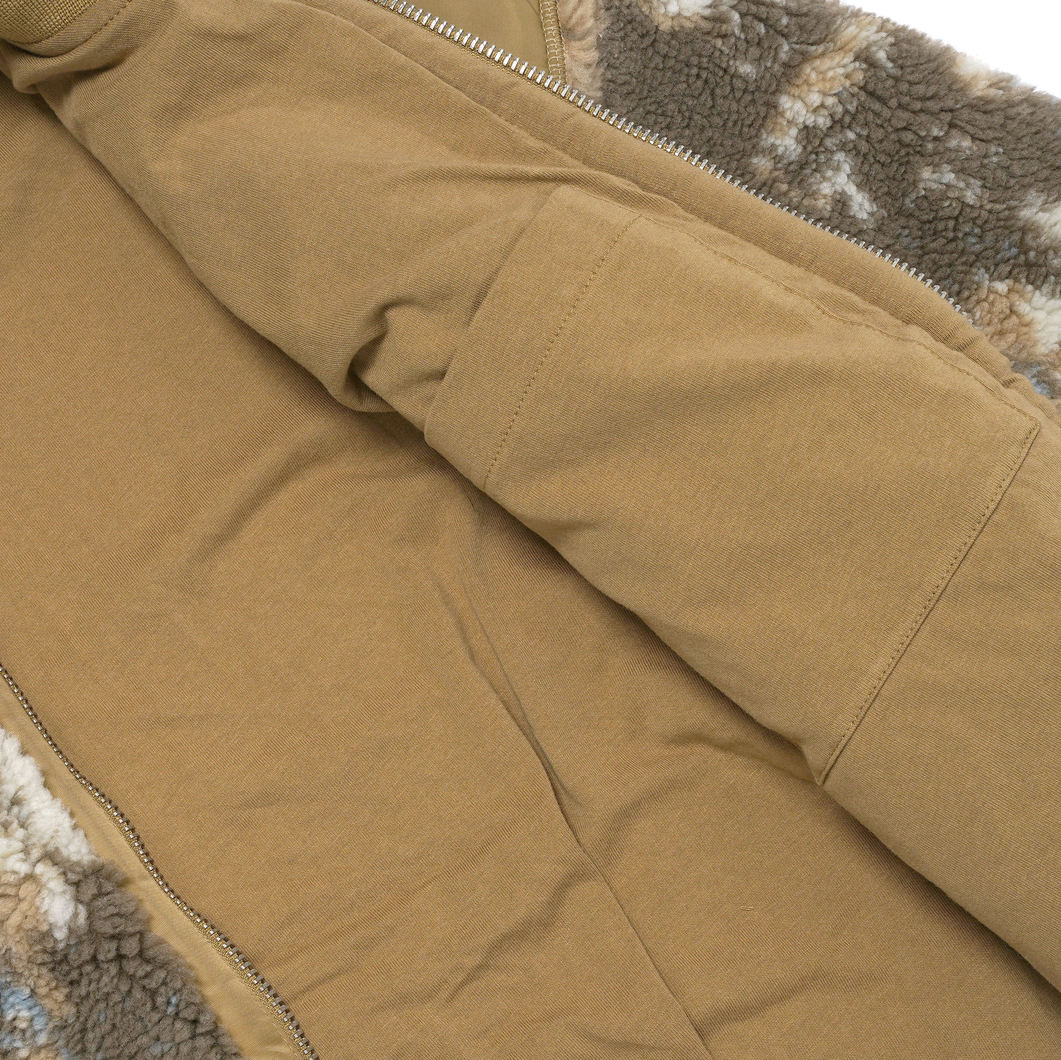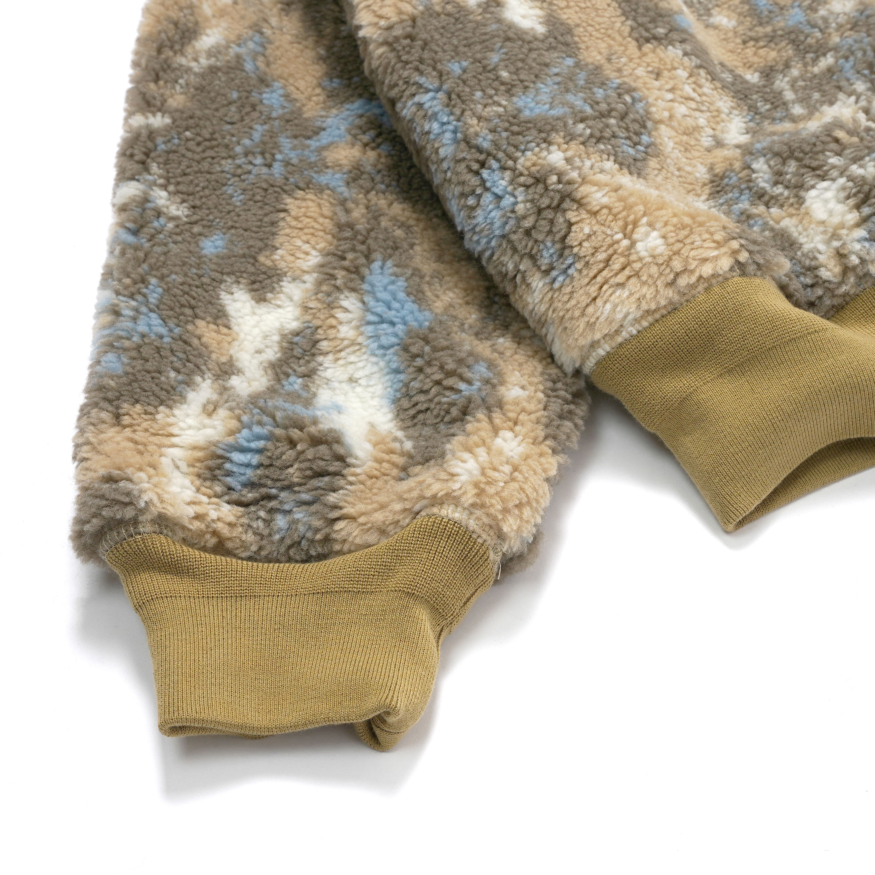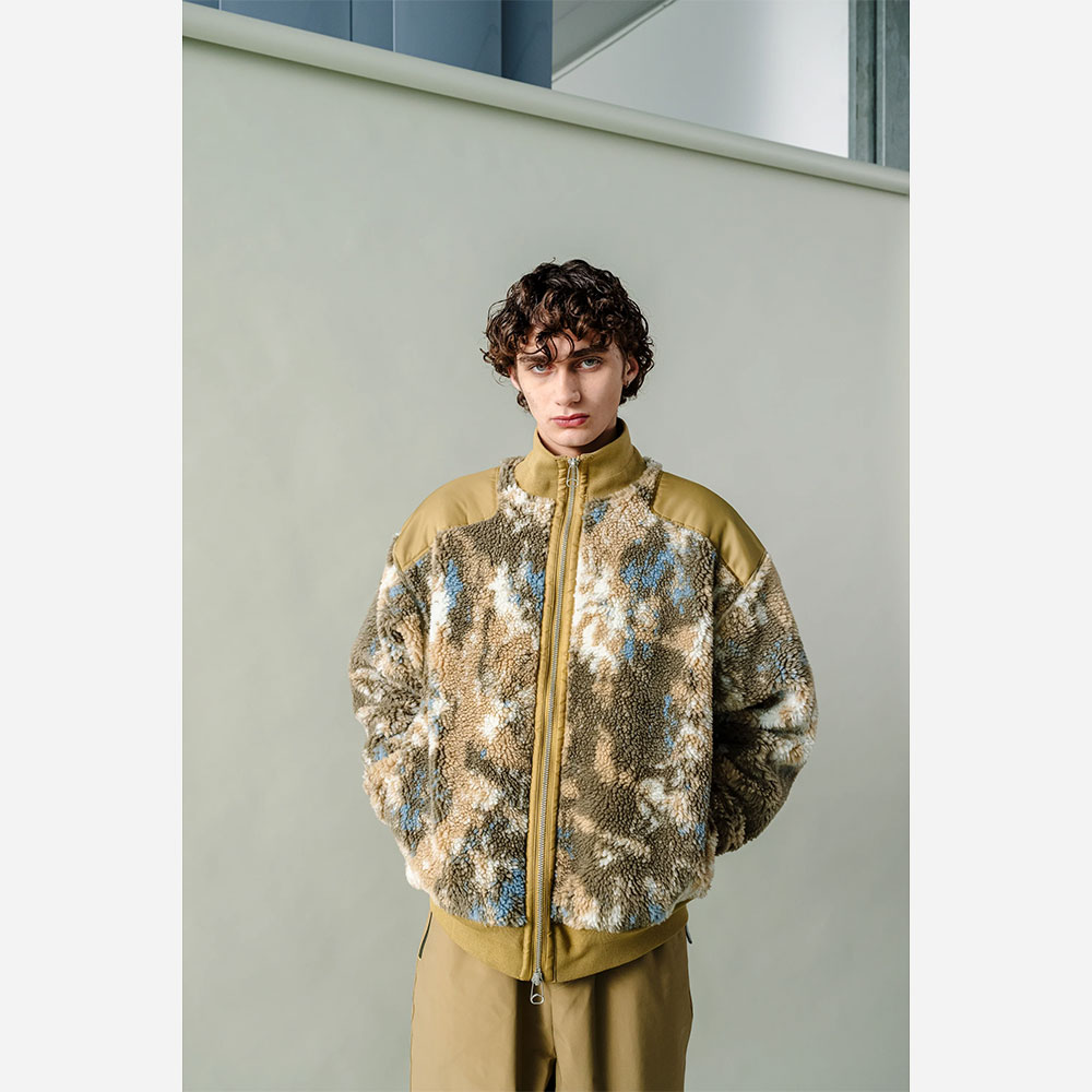 特徴的なタイダイ調のフリース素材を使用した中綿入りジャケット。軽量ながら高い保温性を発揮し、寒冷なシーズンにも快適な着用感を提供します。肩部分にはナイロン素材の切り替えを施し、摩耗を軽減するとともにミリタリーディテールをモダンにアレンジ。裾と袖口はリブ仕様で風の侵入を防ぎ、フィット感と防寒性を向上。フロントはダブルジップ仕様となっており、気温やスタイリングに応じた開閉調整が可能です。デザイン性と実用性を兼ね備えた、冬の主力アウターとして活躍する一着です。
