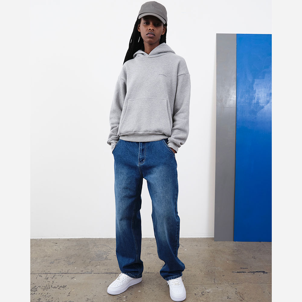 胸元にブランドロゴを施した、シンプルなフーディーです。やや着丈は短め。汎用性の高い定番アイテム。裏起毛。