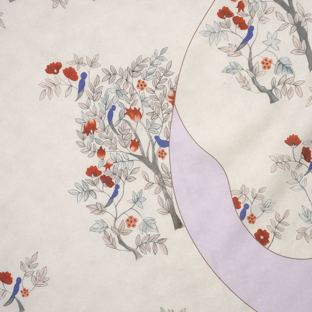 韓国の民画(MINHWA)の技法を用いて描いたオリジナルテキスタイルが魅力の、jackpot別注の大判スカーフ。