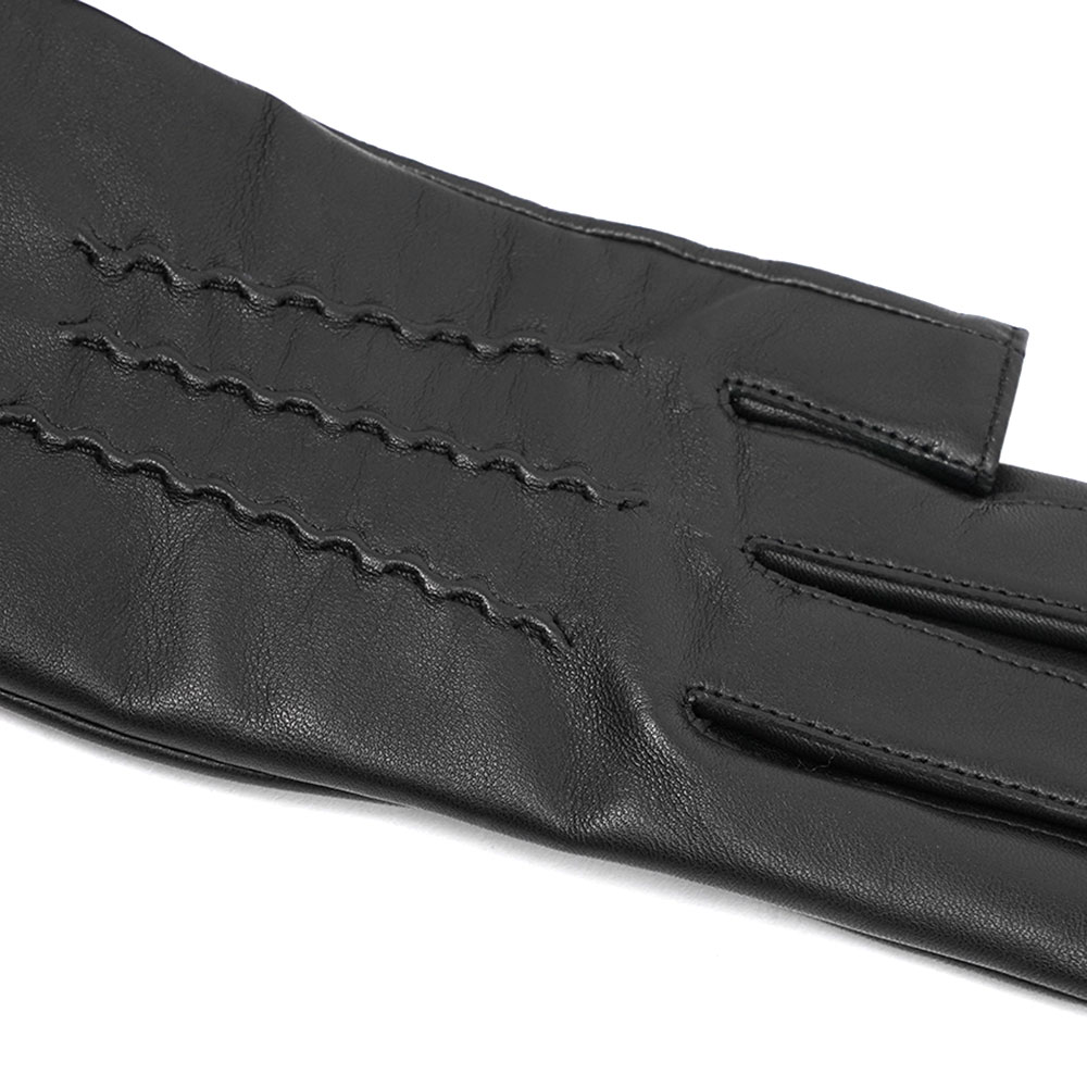 25AWコレクションのキーワード「FINGERSMITH」を象徴するアイテム。表は柔らかいラムレザー、裏はカシミヤを使用し、保温性と心地よさを兼ね備えた指切りデザインのグローブです