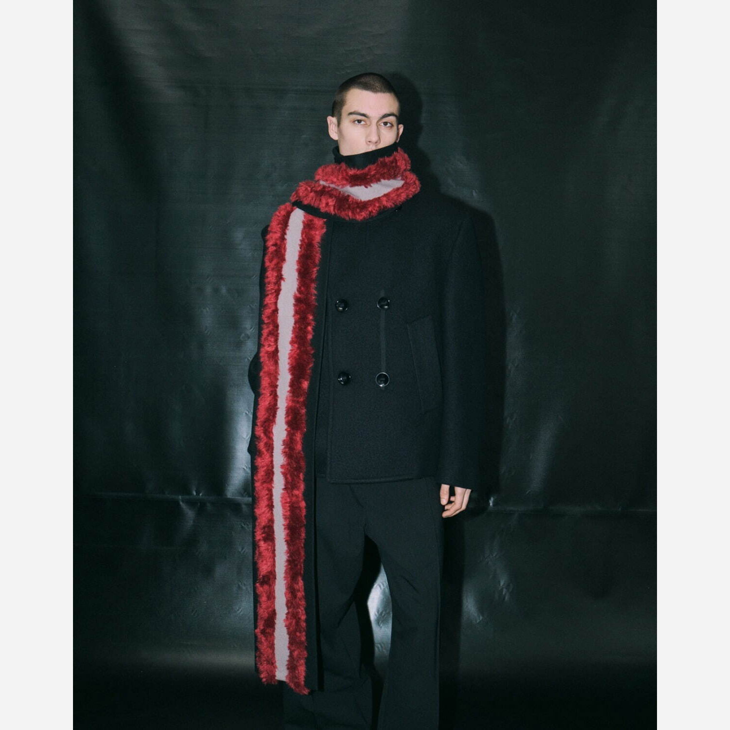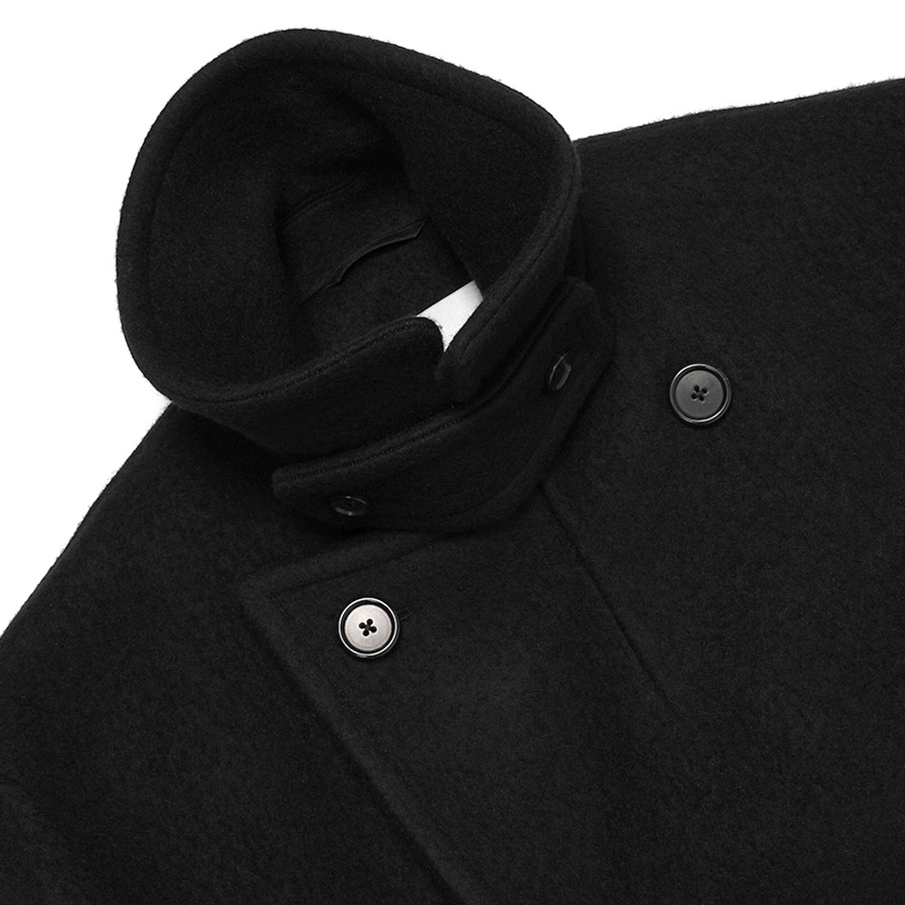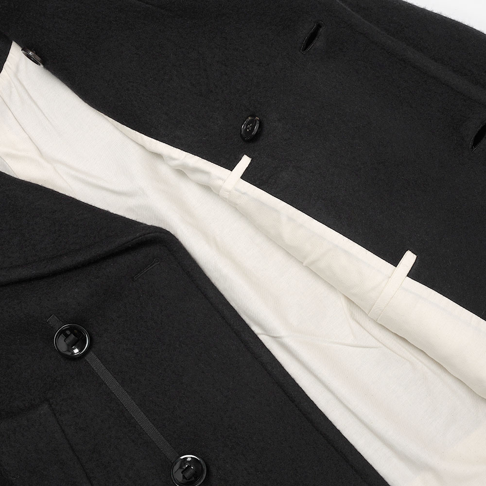 重厚なウール生地を贅沢に使ったピーコート。立体感のあるボクシーなシルエットが印象的な一着。