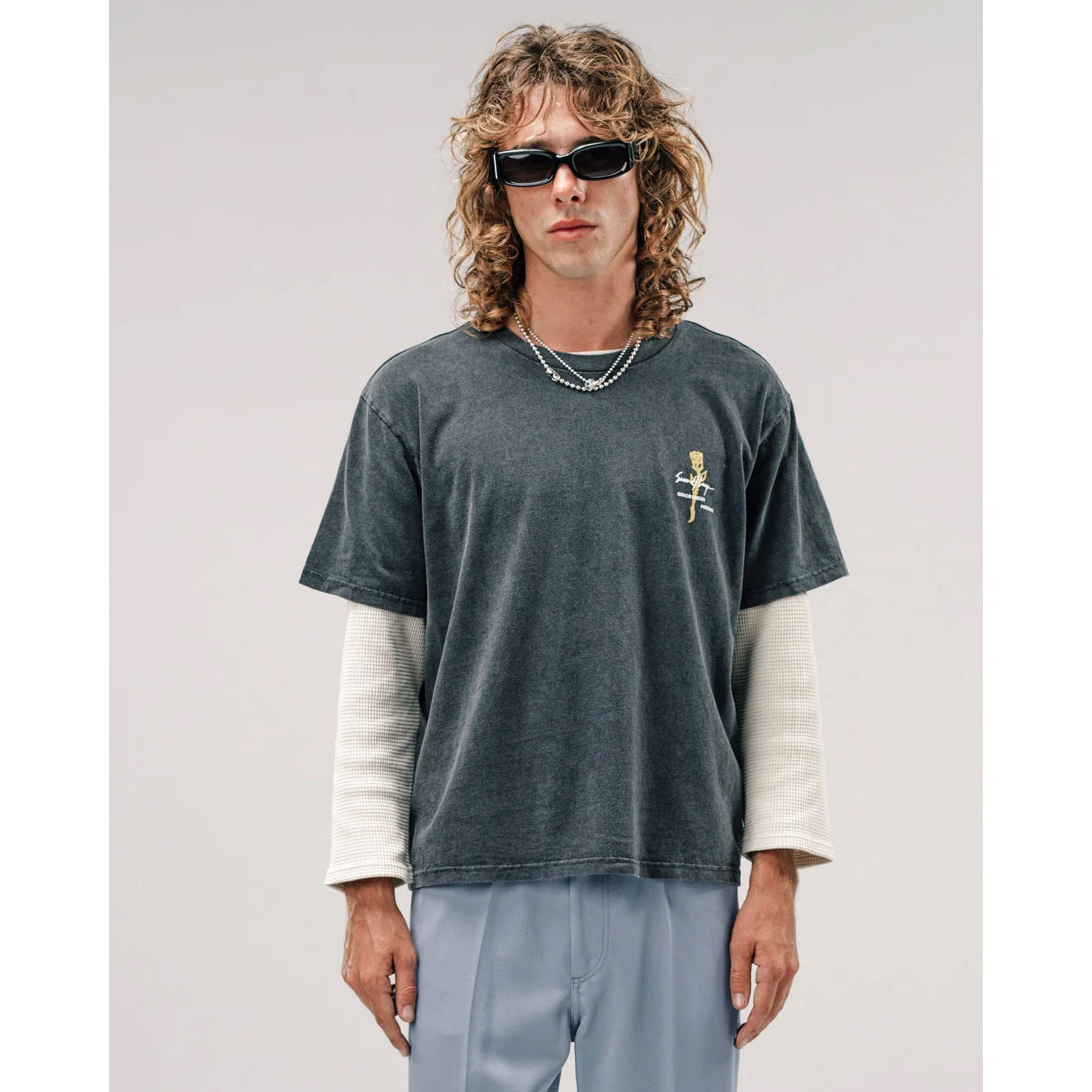 左胸にSL Roseのグラフィックが発泡プリントされています。リラックスフィットで着心地抜群のTシャツ。