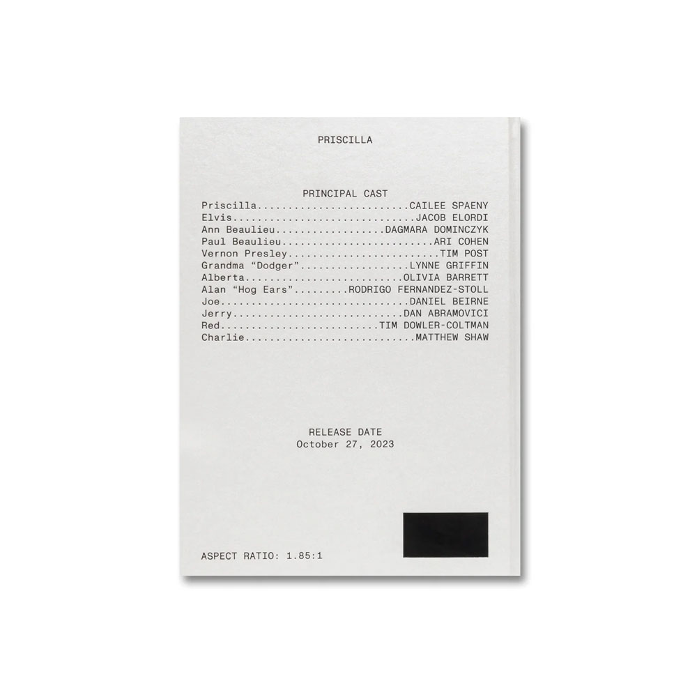 A24 / MACK よりPRISCILLA SCREENPLAY BOOK BY SOFIA CAPPOLA になります。