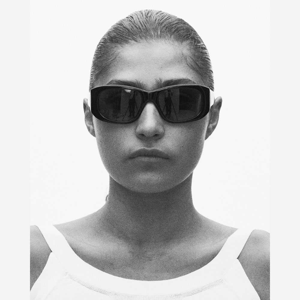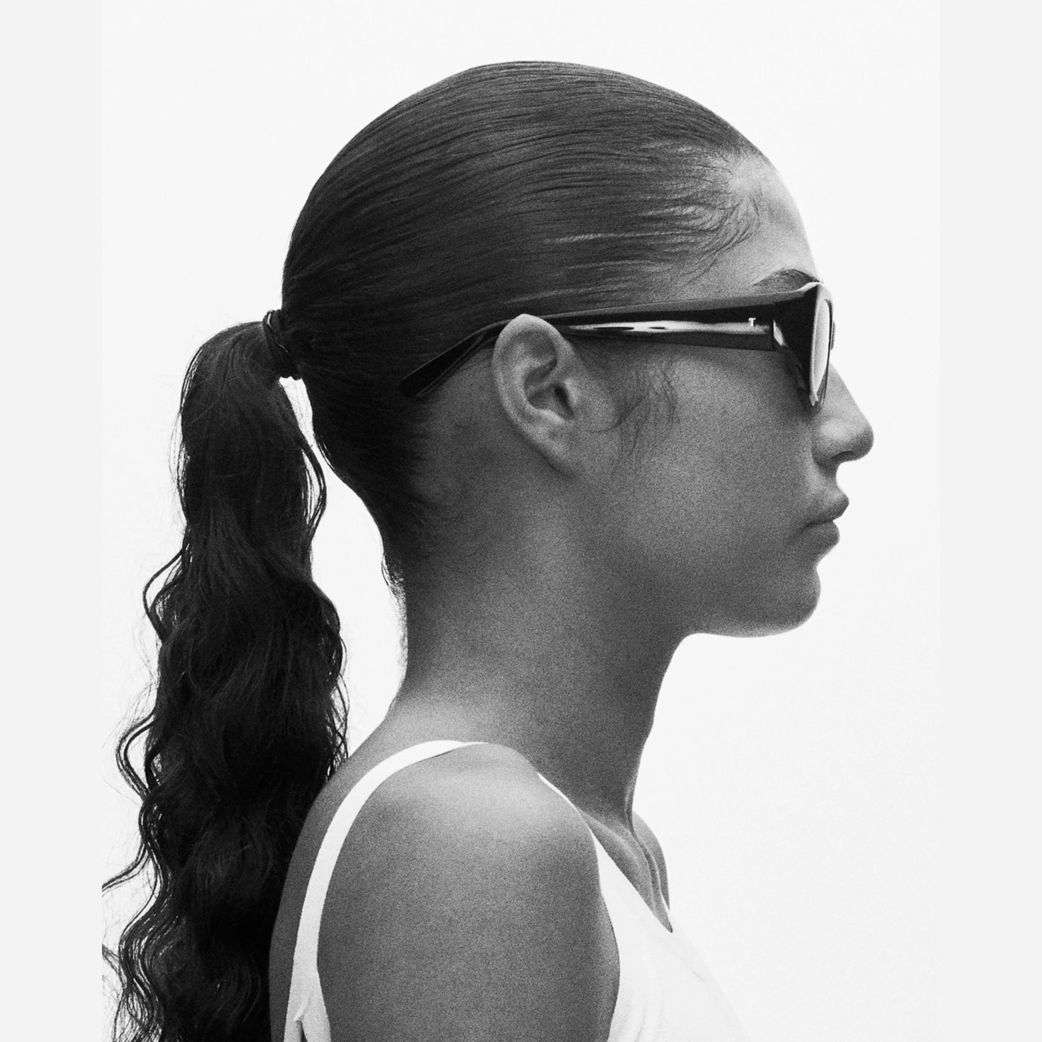 AL(エーエル)は、柔らかな曲線と大胆なエッジを併せ持つ、ボリューム感のあるレクタンギュラーフレーム。60年代のジャクリーン・オナシスを象徴するシルエットに、90年代のエッジィなムードを加えた、グラマラスでありながら洗練されたスタイルです。