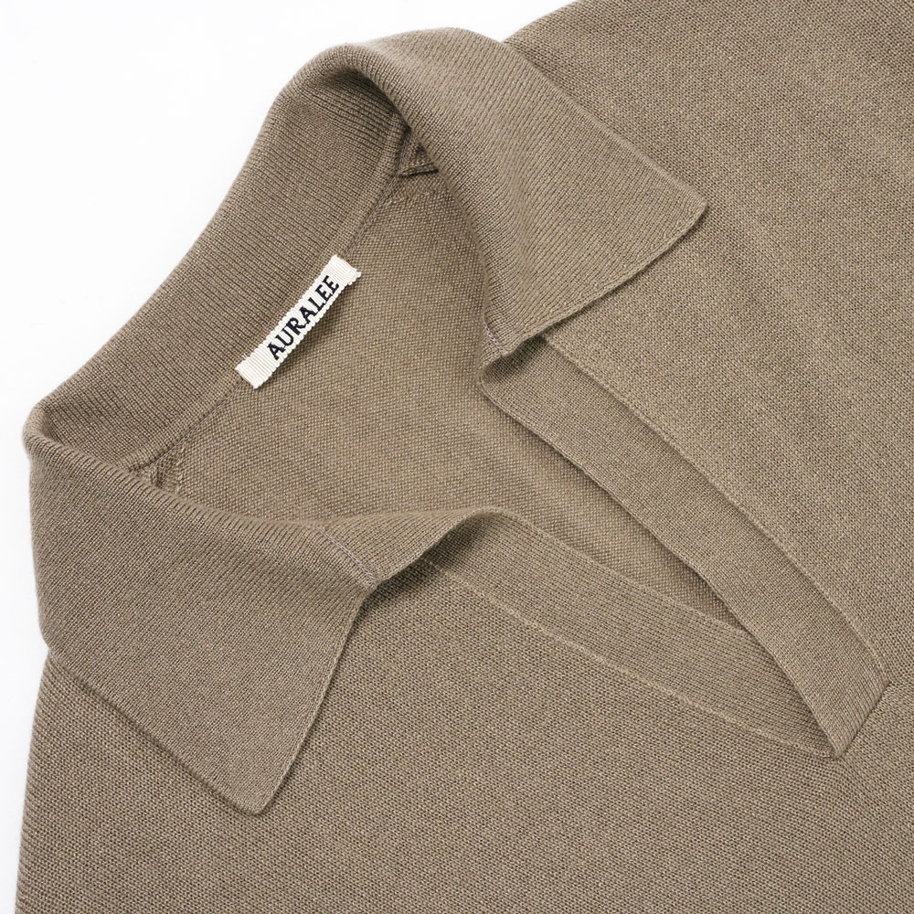 AURALEE/オーラリーよりSUPER FINE CASHMERE SILK KNIT SKIPPER POLO KHAKI BROWN A26SP02SCになります。