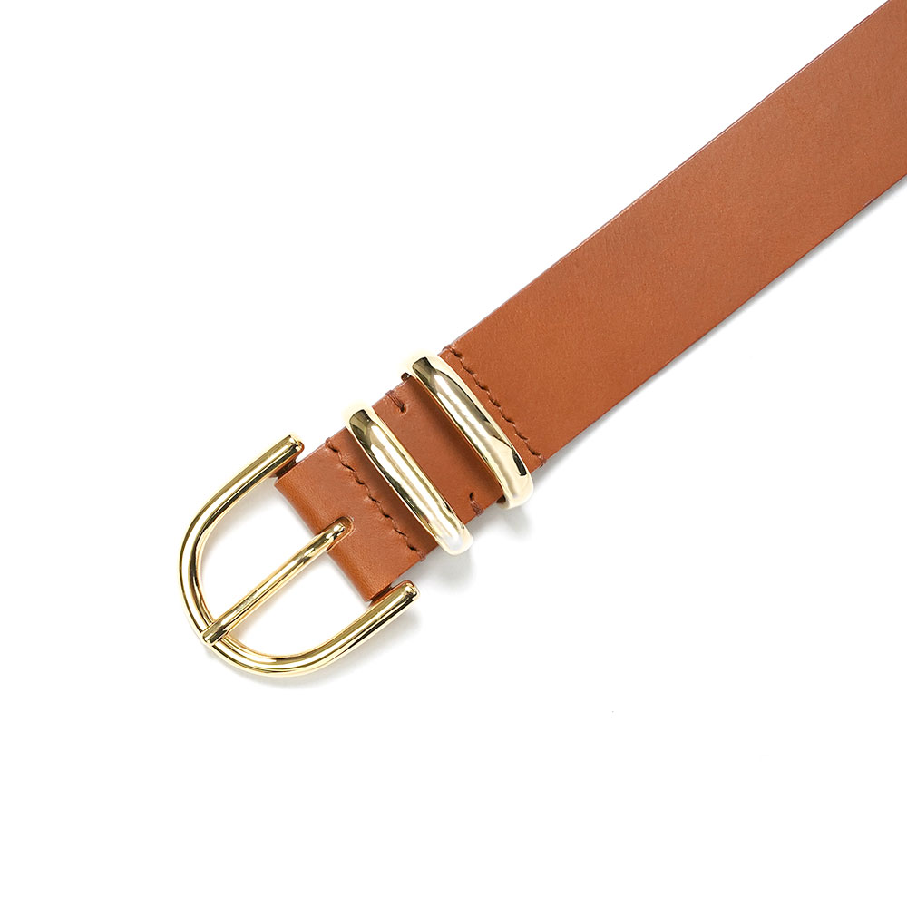 滑らかな表情のレザーを使用した、ミニマルながら存在感のある一本。適度な厚みとしなやかさを兼ね備え、使い込むほどにレザー特有の経年変化を楽しめます。ゴールドカラーのバックルとダブルループが上品なアクセントとなり、シンプルなスタイリングにも自然に馴染みつつ、程よい主張が◎。先端は丸みを持たせた仕上げで、細部まで丁寧にデザインされています。デニムやスラックスはもちろん、ドレス寄りのスタイルにも合わせやすく、シーズンを問わず活躍するアイテムです。