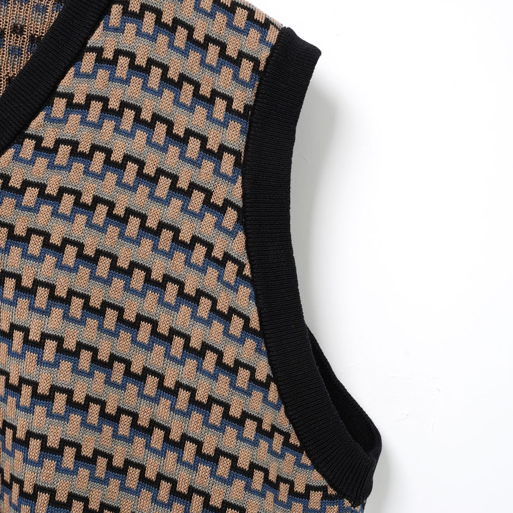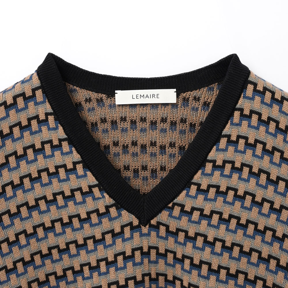 LEMAIRE(ルメール)からV NECK JACQUARD VEST BLACK/BEIGE/BLUEになります。