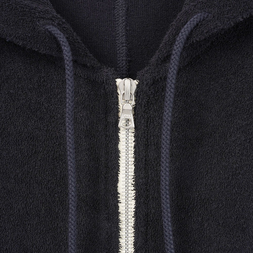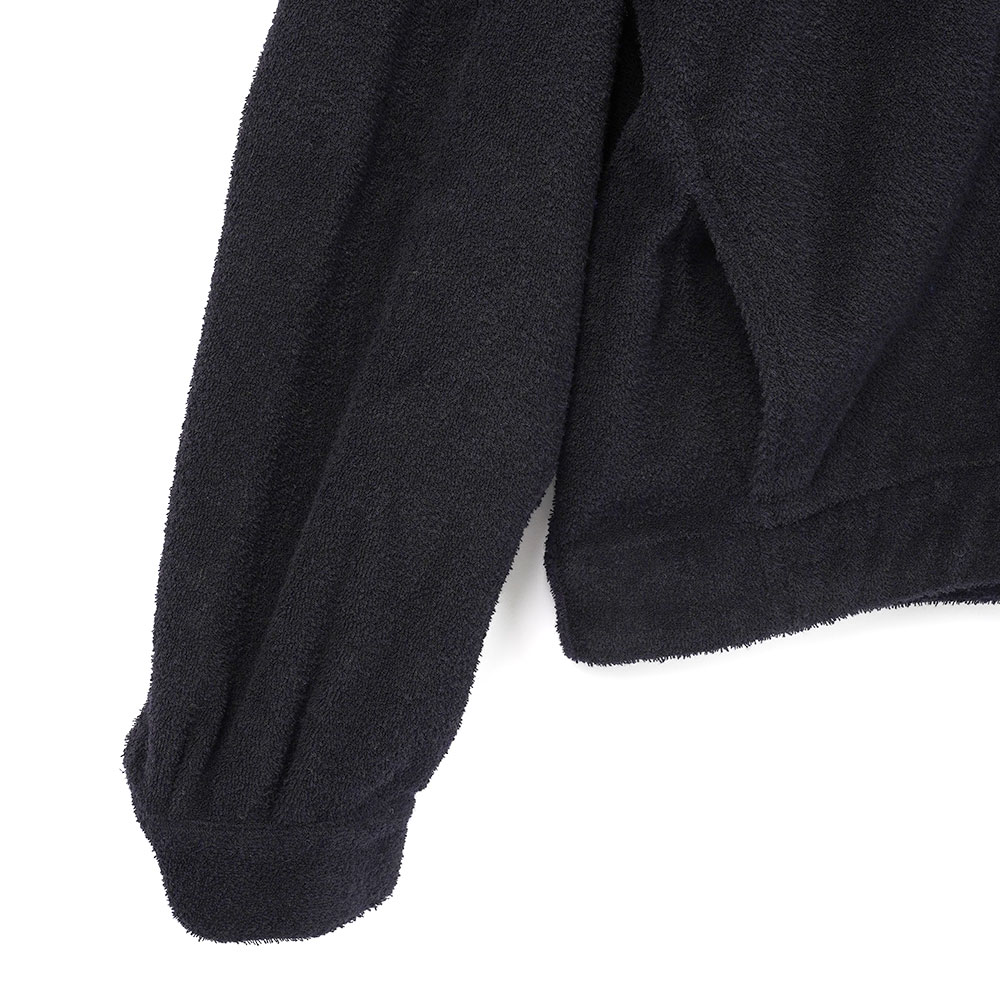 希少価値の高い両面パイル編み機を使用して編み上げた特別な素材です。パイル特有の柔らかさと程よい安定感を両立させるため、中糸にはナイロン糸を採用しています。軽やかでやさしい肌触りが魅力の表情豊かな風合いが特徴です。
