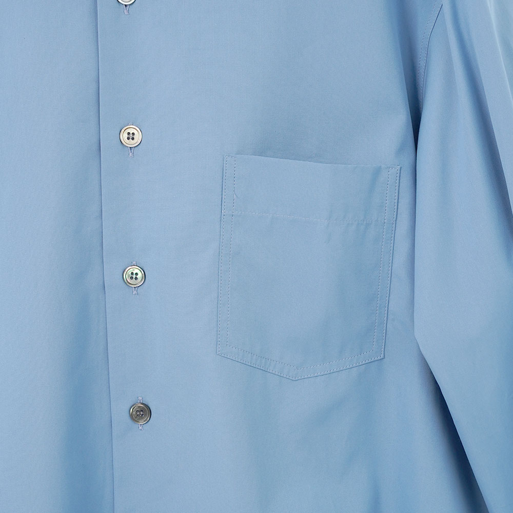 ハリ感のあるヘビーポプリン生地に貝ボタンを採用。
