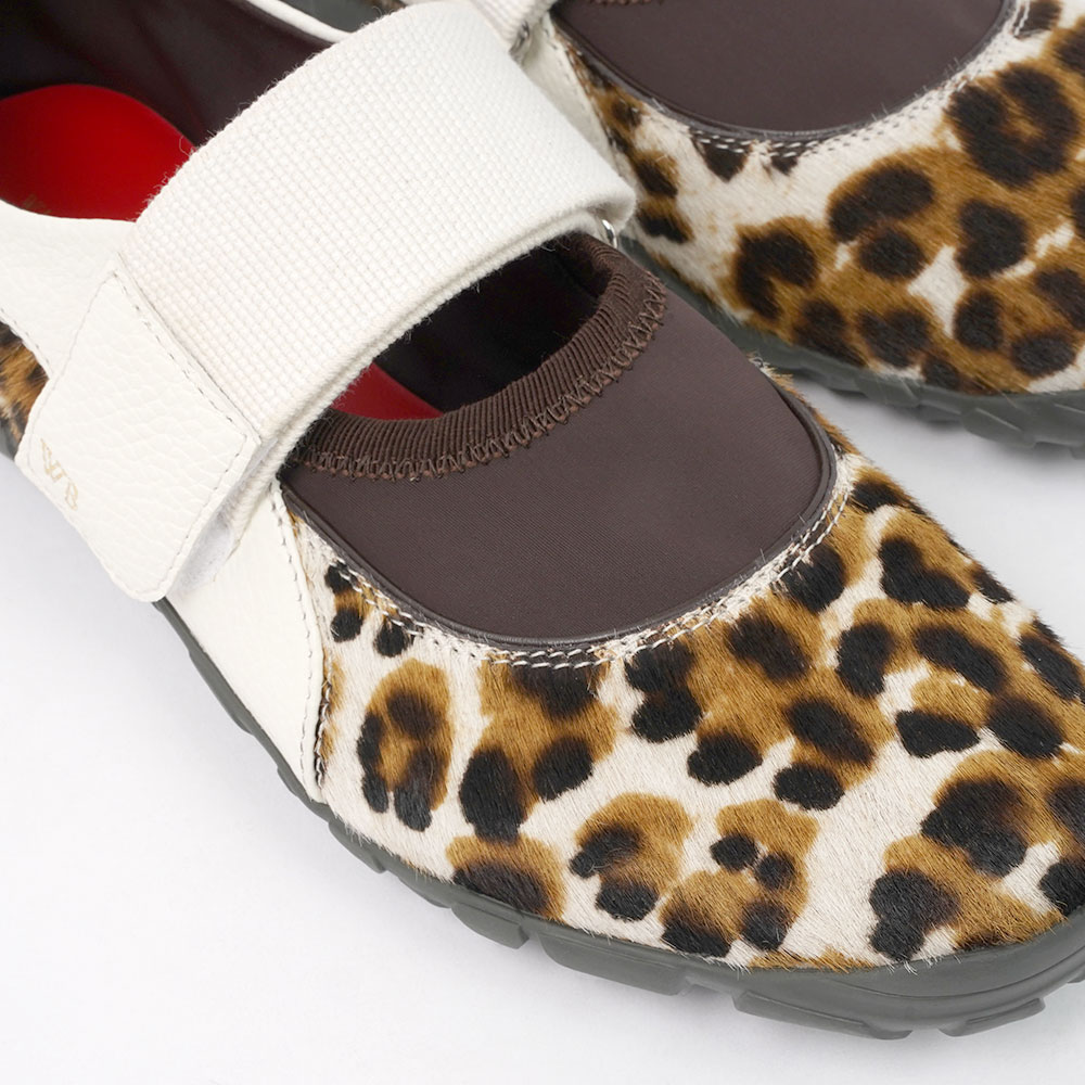 ハラコ素材にアニマルプリントを施し、アウトソールはビブラムソールを採用しております。