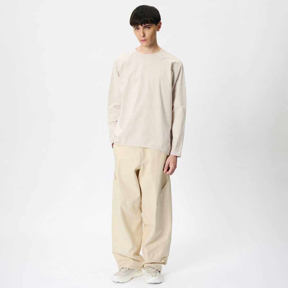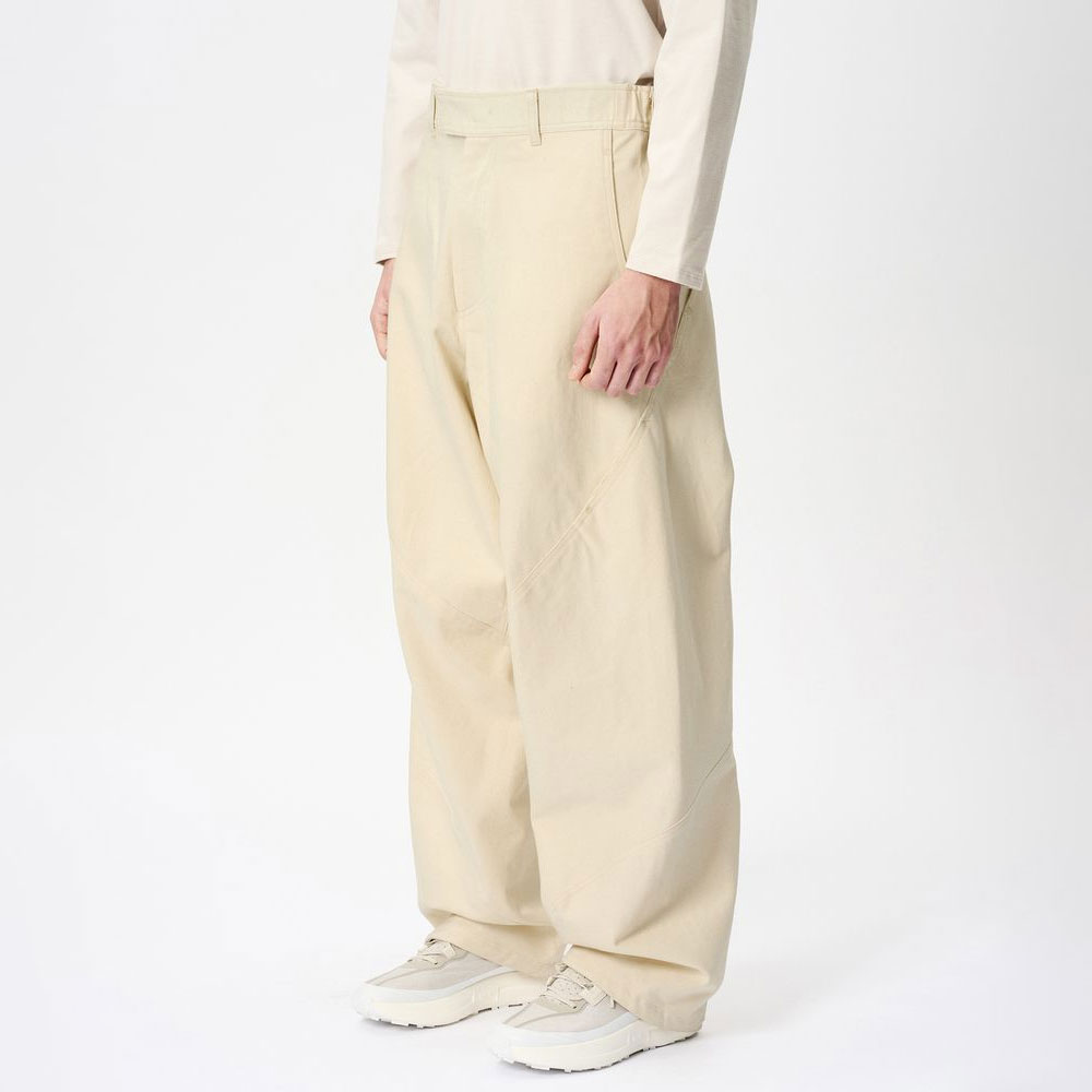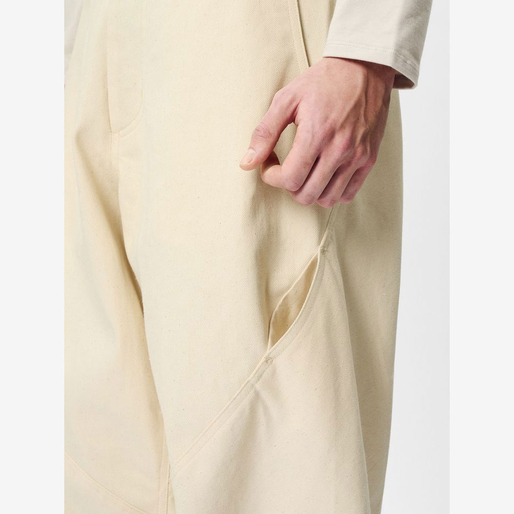 独自の立体的なカットによるユニークなシルエットを描きます。コットン100%の素材でワンウォッシュによる柔らかな風合いが特徴です。