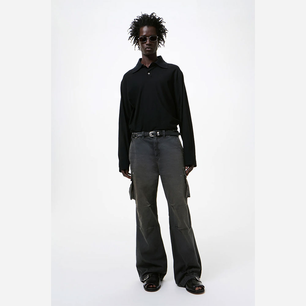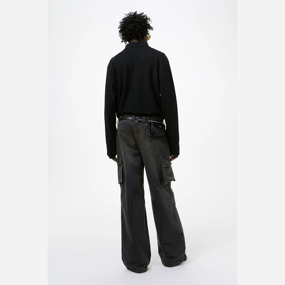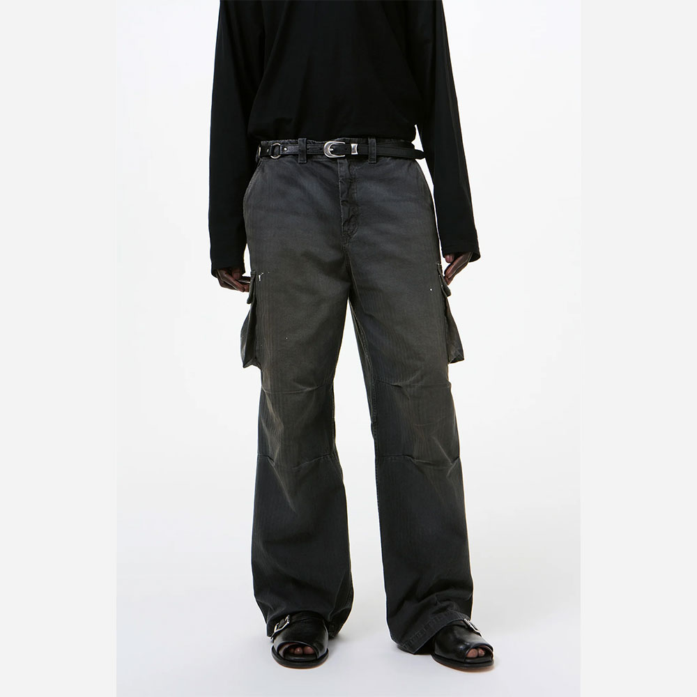 マウントカーゴは、ゆったりとしたストレートシルエット。サイドカーゴポケット、ダーツ入りの膝、YKKジップフライ、コロゾボタン、真鍮スナップ、シングルバックポケットを備えています。