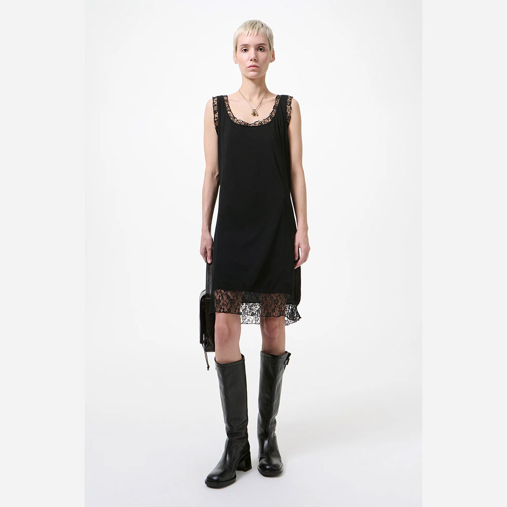 アームホール、ネックライン、裾のコントラストパネルはベビーロック仕上げ。繊細で軽やかなエッジが、全体に抜け感をもたらします。