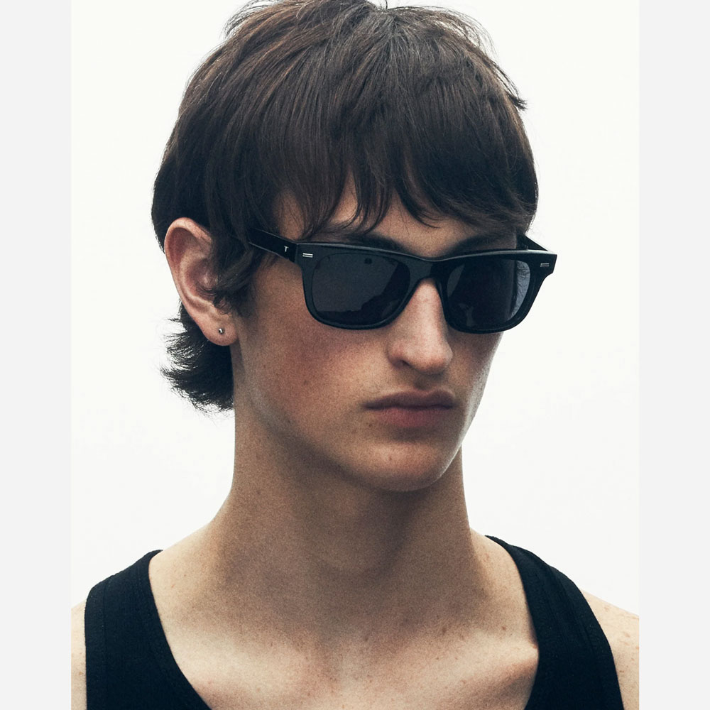 オリジナルのフレームよりもレンズ高を抑え、90年代のシネマティックなスタイルを想起させる、シャープで角のあるフォルムに仕上げています。幅広のテンプルがシックで程よくオーバーサイズな存在感を演出し、スタイル性と掛けやすさを高い次元で両立させています。